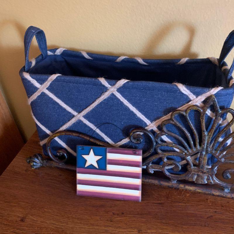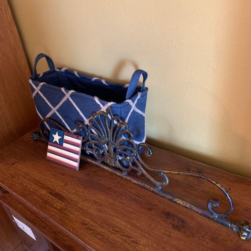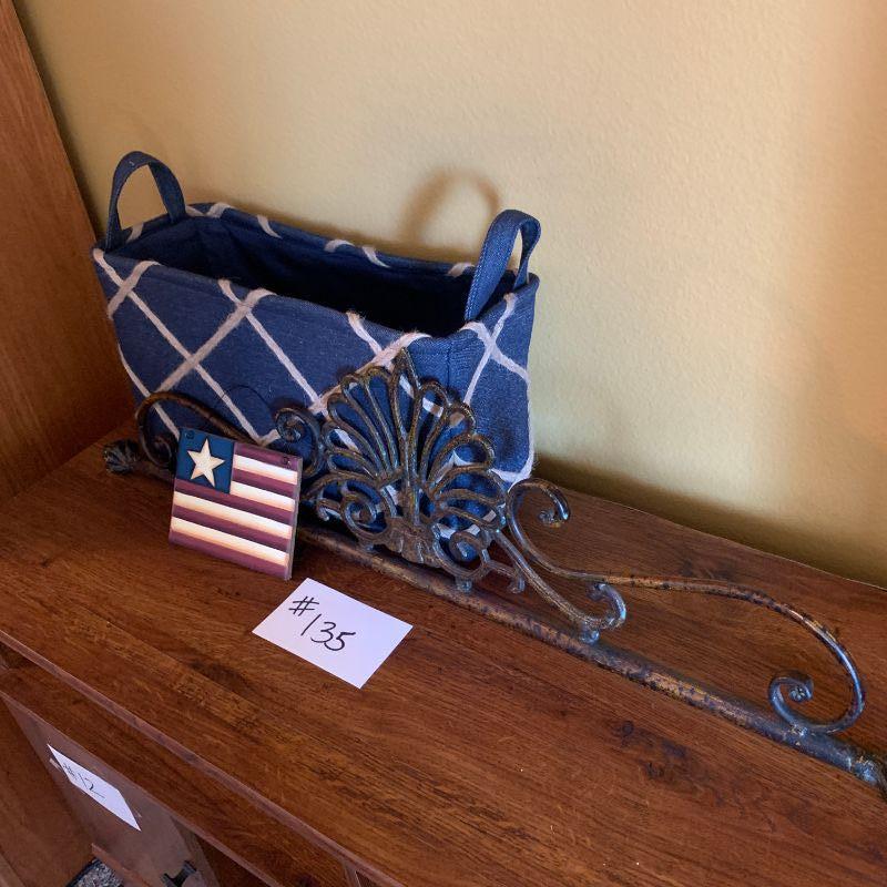 Lot 135 curtain rack, bag, flag wooden, miscellaneous items