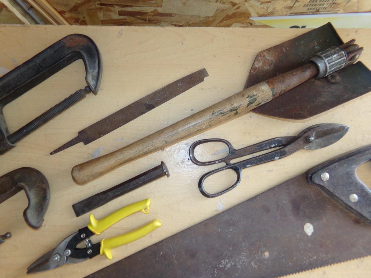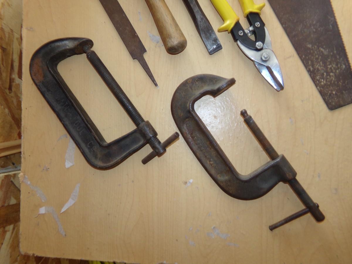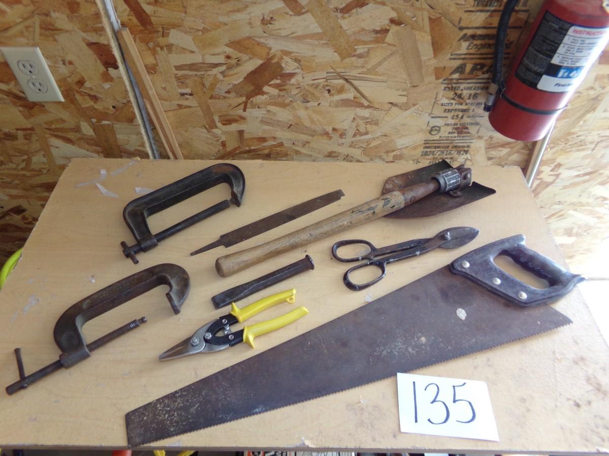 CLAMPS, FILE, SHOVEL, HAND SAW AND MORE.