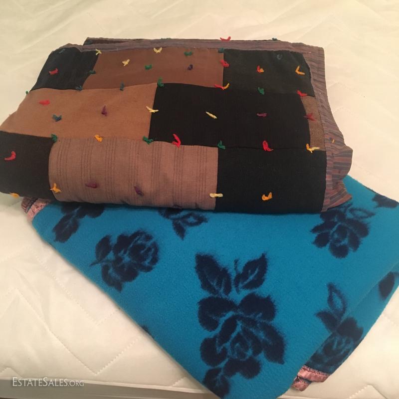 Both are full size and in good condition. Quilt is heavy wool fabric with flannel backing. Fleece has a small section where edging is pulled away (see photos). Made by Beacon Boulder Boutique in the USA. This lot is available for shipping or local pick up in Asheville, NC.