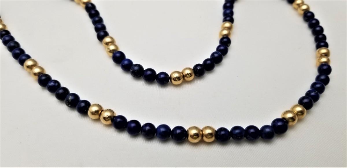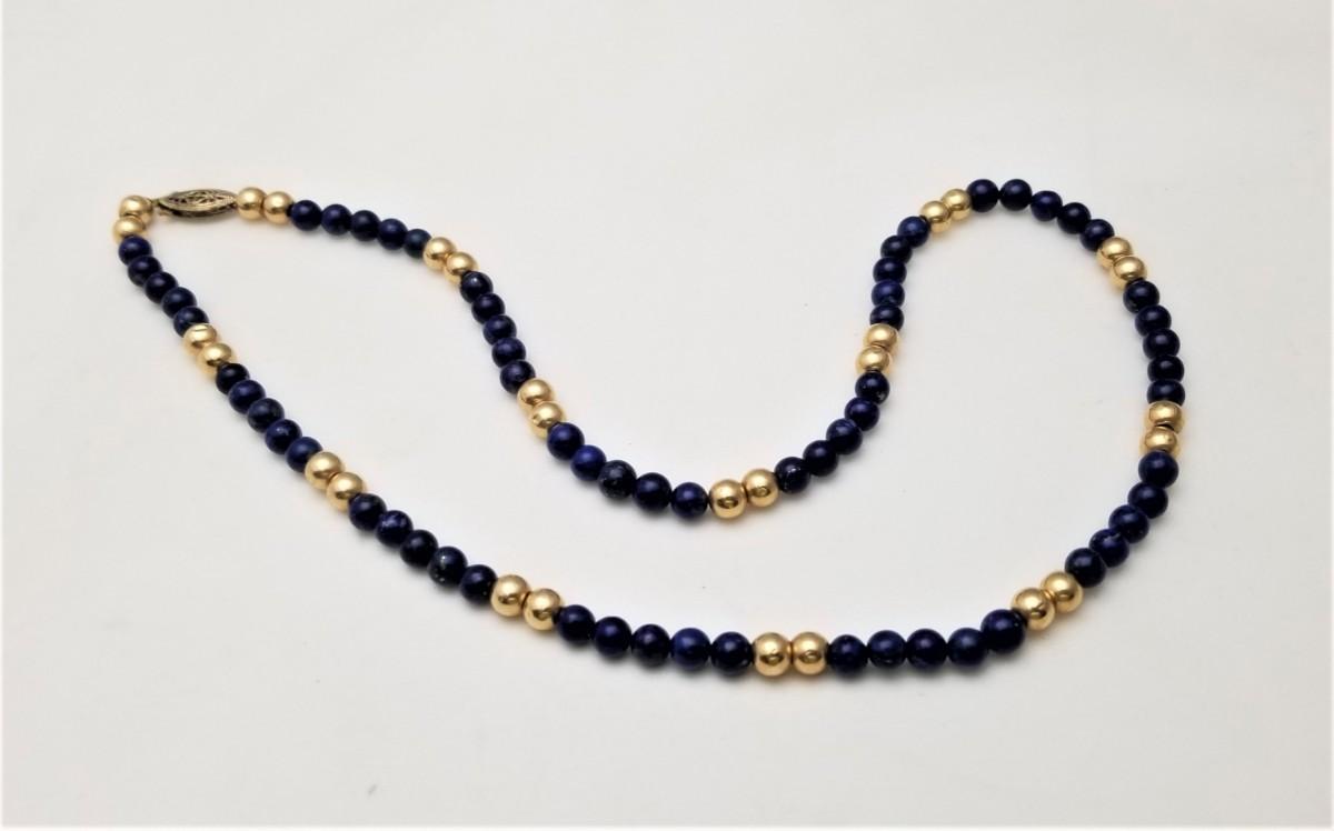 Lot #135  Lapis Lazuli and 14kt Gold Bead Necklace