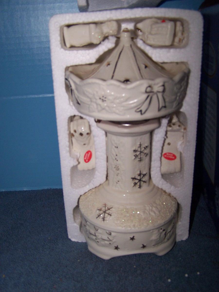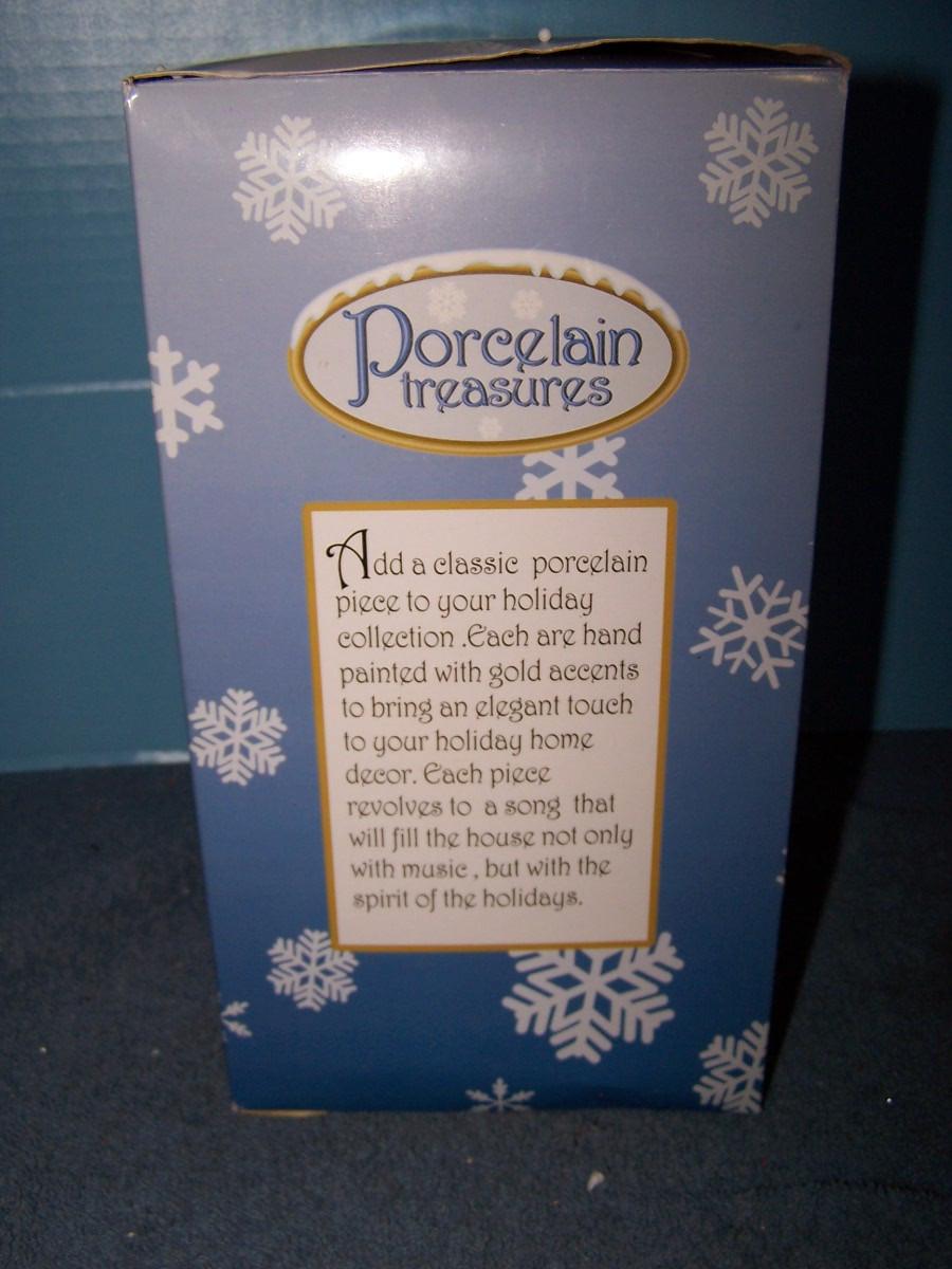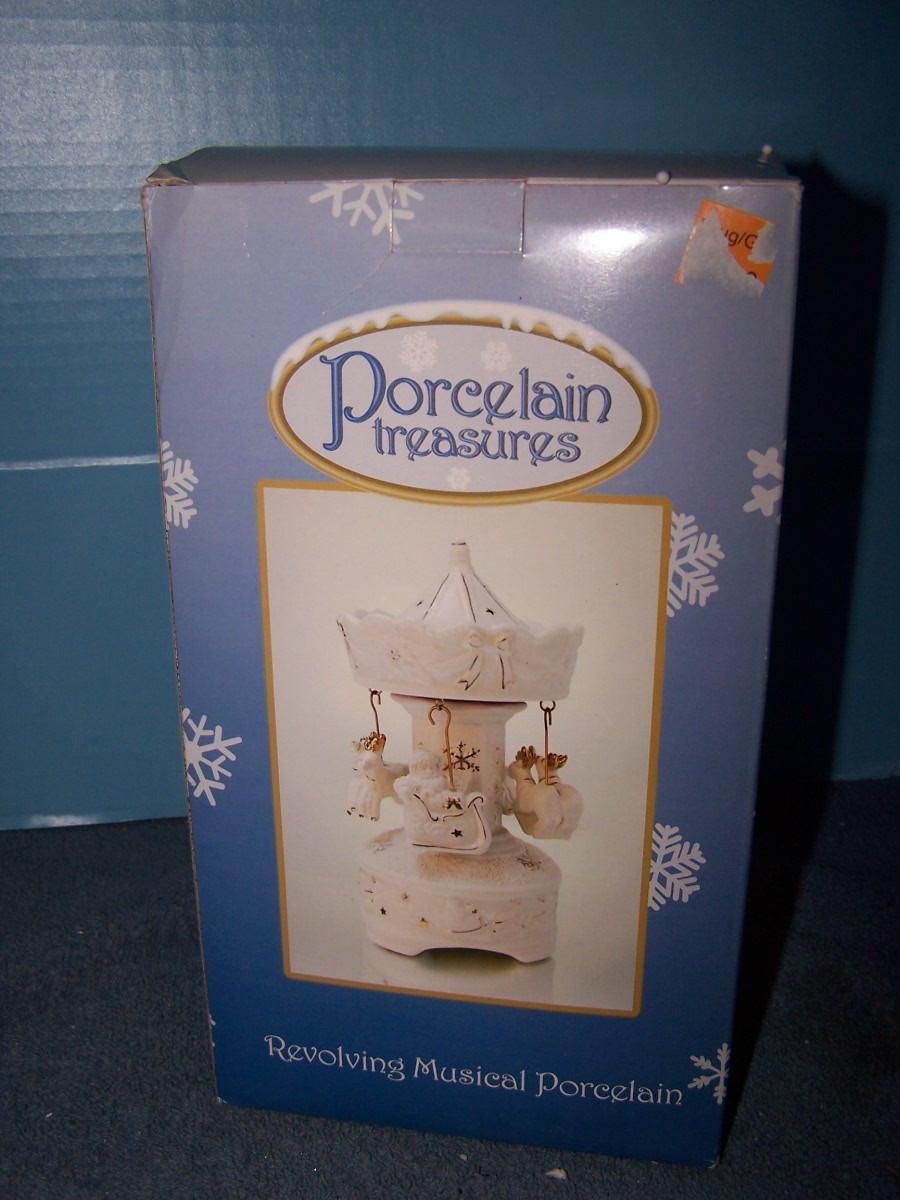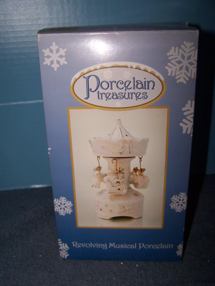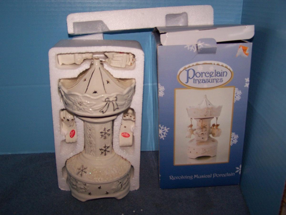 THIS IS A LOVELY COLLECTABLE REVOLVING MUSICAL PORCELAIN TREASURES CAROUSEL! MINT IN BOX.. BOX HAS SOME SLIGHT WEAR...