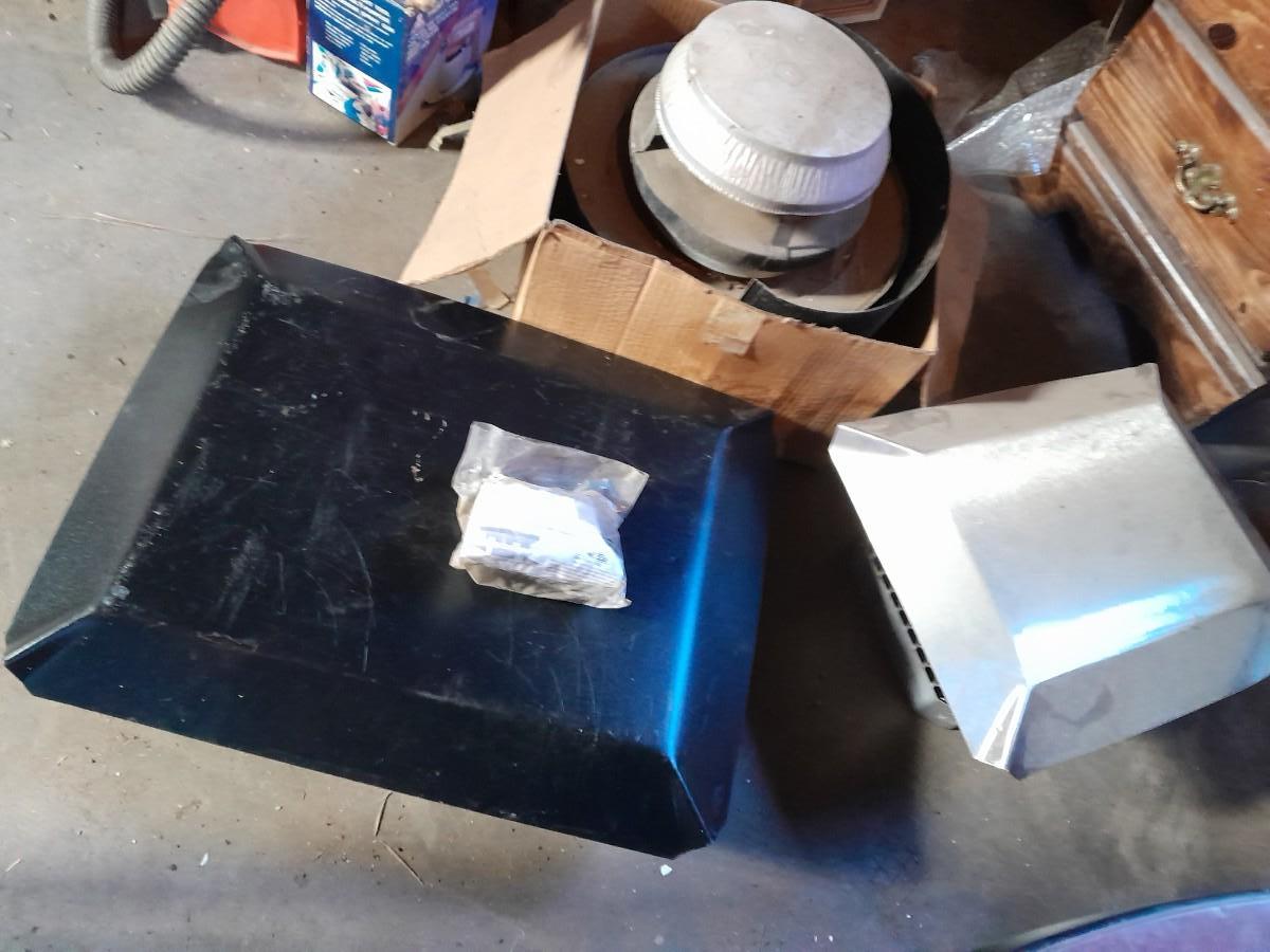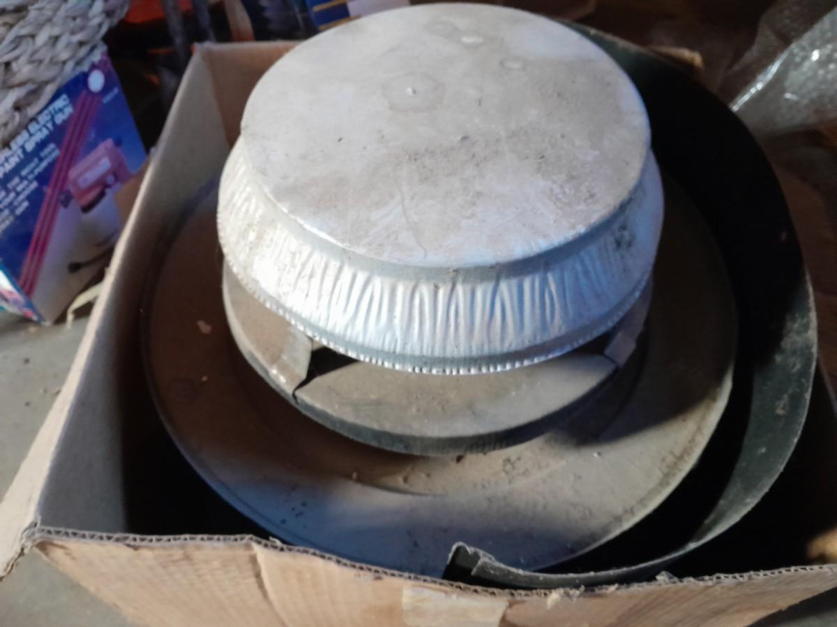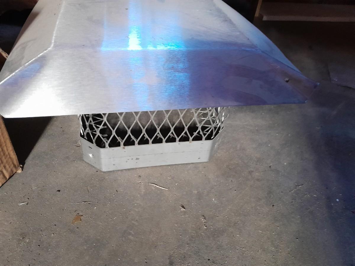 ONE SQUARE, ONE RECTANGLE METAL AND MESH FIREPLACE CHIMNEY CAPS AND ONE ROUND ONE