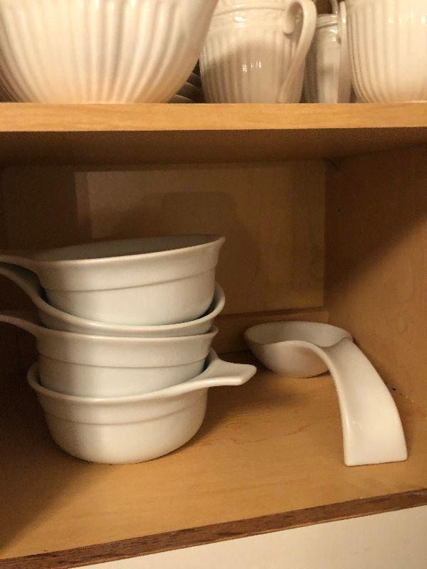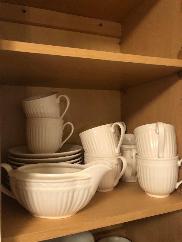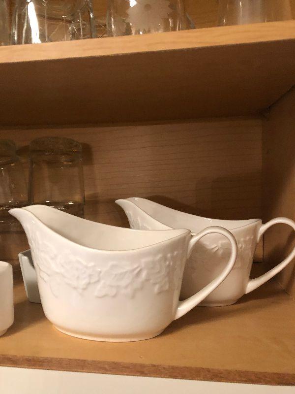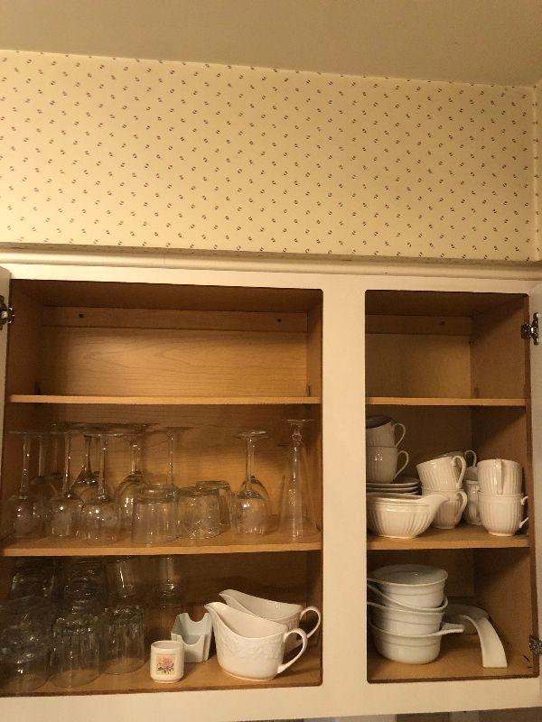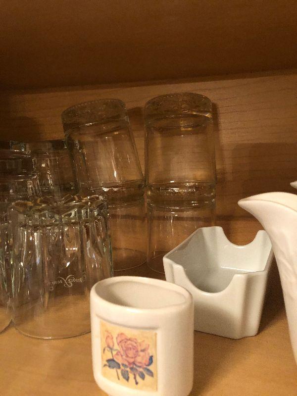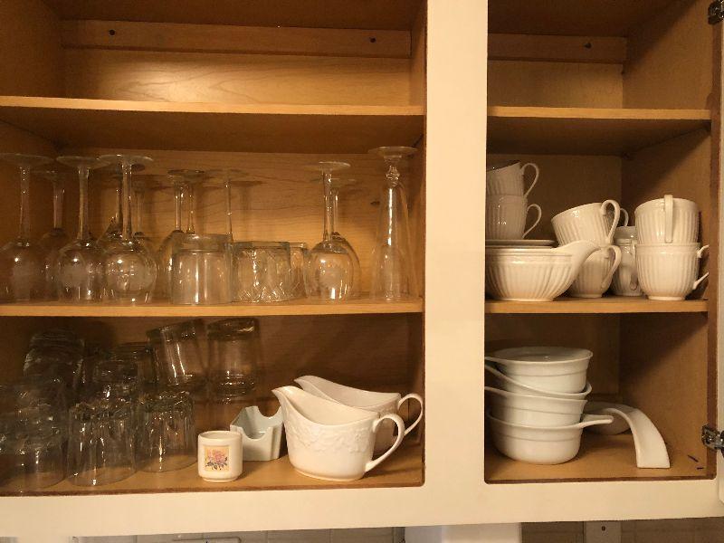 Miscellaneous Kitchen Ware includes Gravy Boats, Vintage Etched Stemware, Bowls, Cups, Dishes and More.