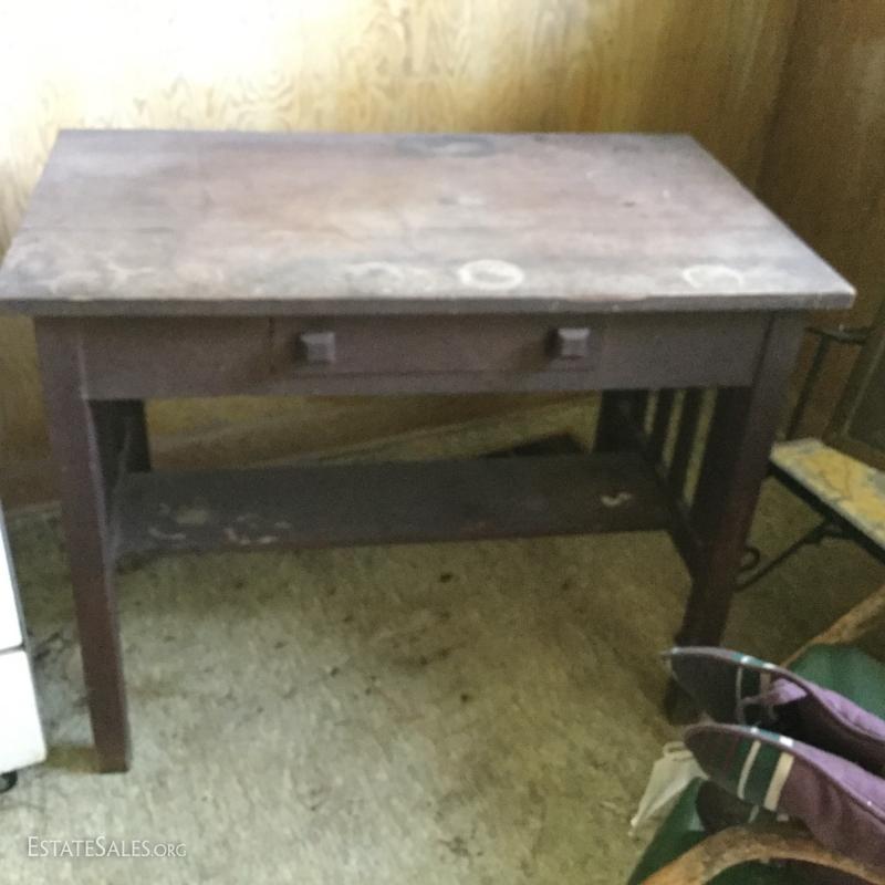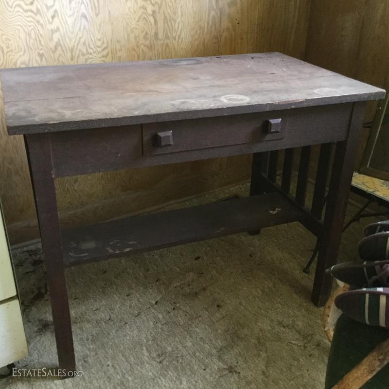 Mission Style Table or Desk with some stains. Measures 39.5"l x 23.5"w x 30.5"h No shipping Local pick up in Saluda, NC