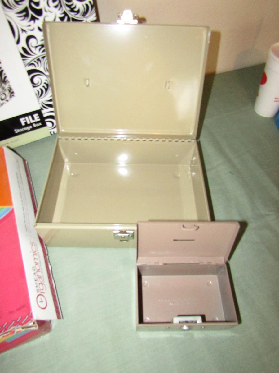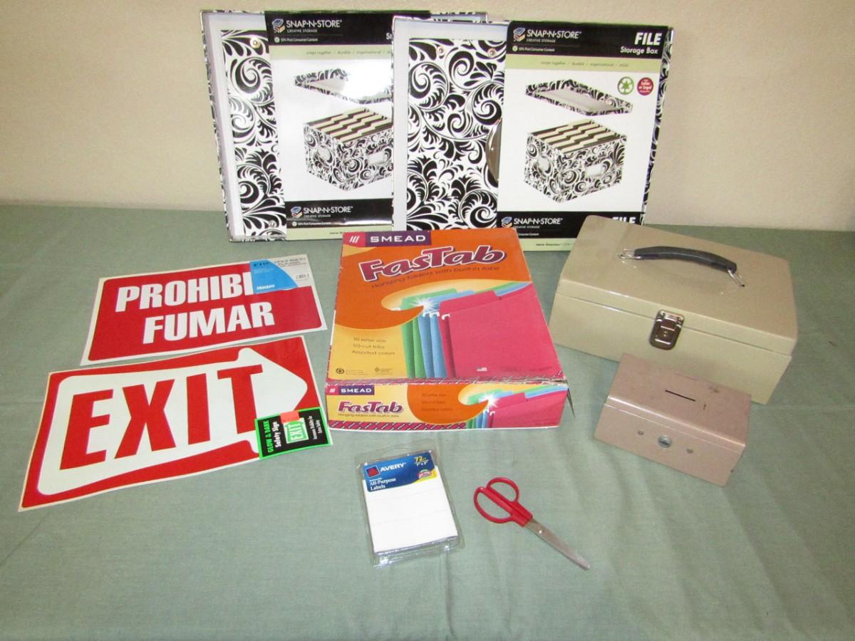 MONEY BOXES, SIGNS, FILE BOXES, AND FILE FOLDERS, SCISSORS,