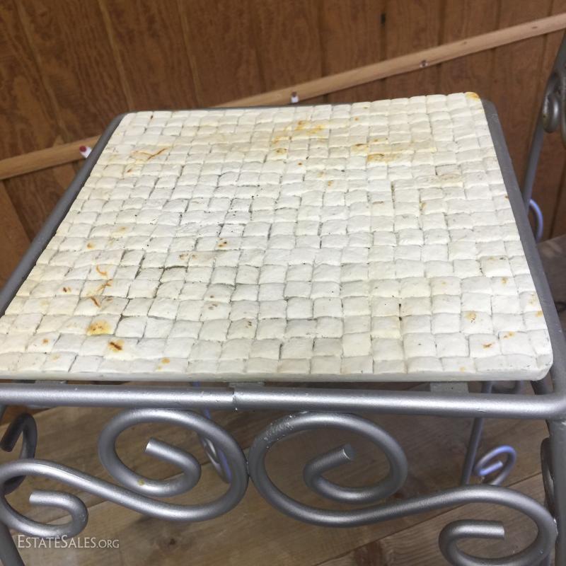Lot 135 - Outdoor table, chairs and plant stands.