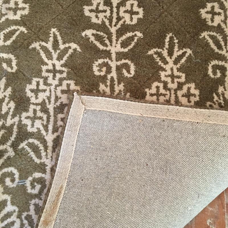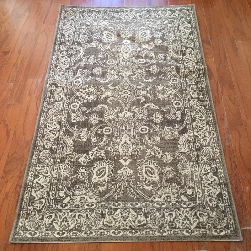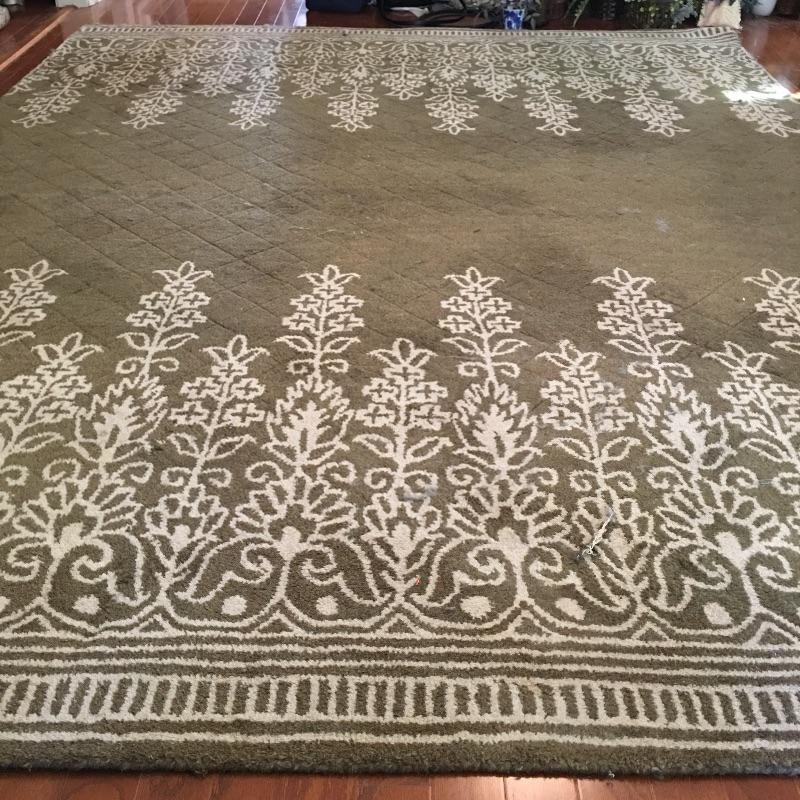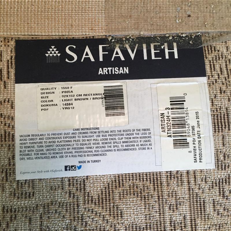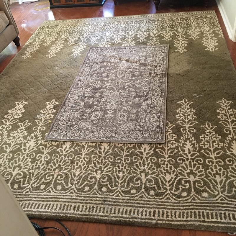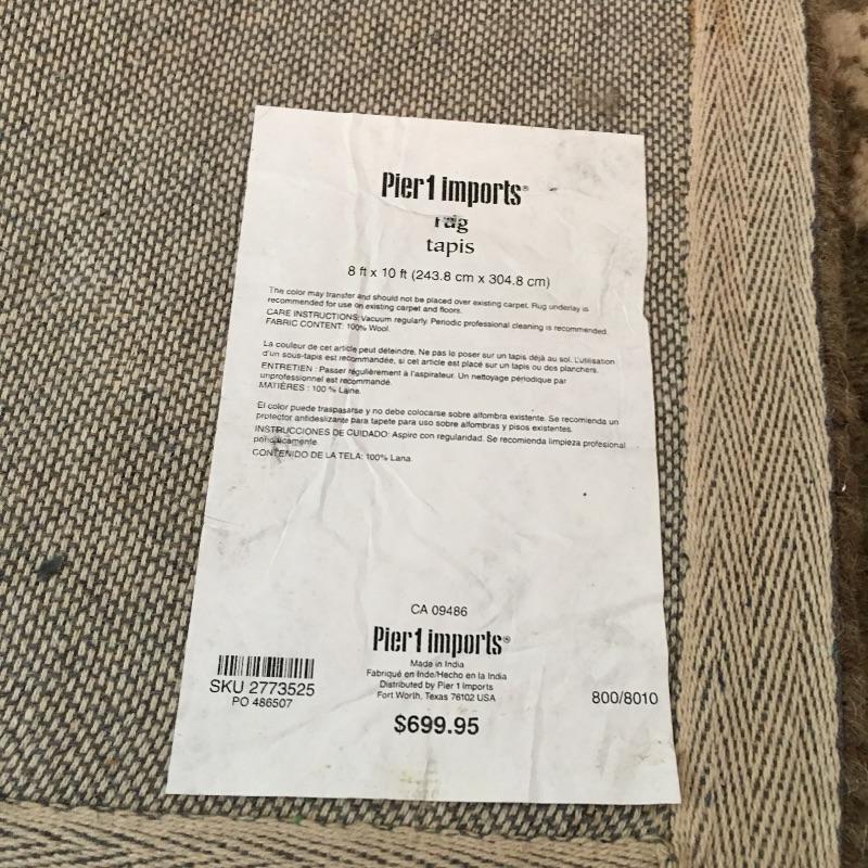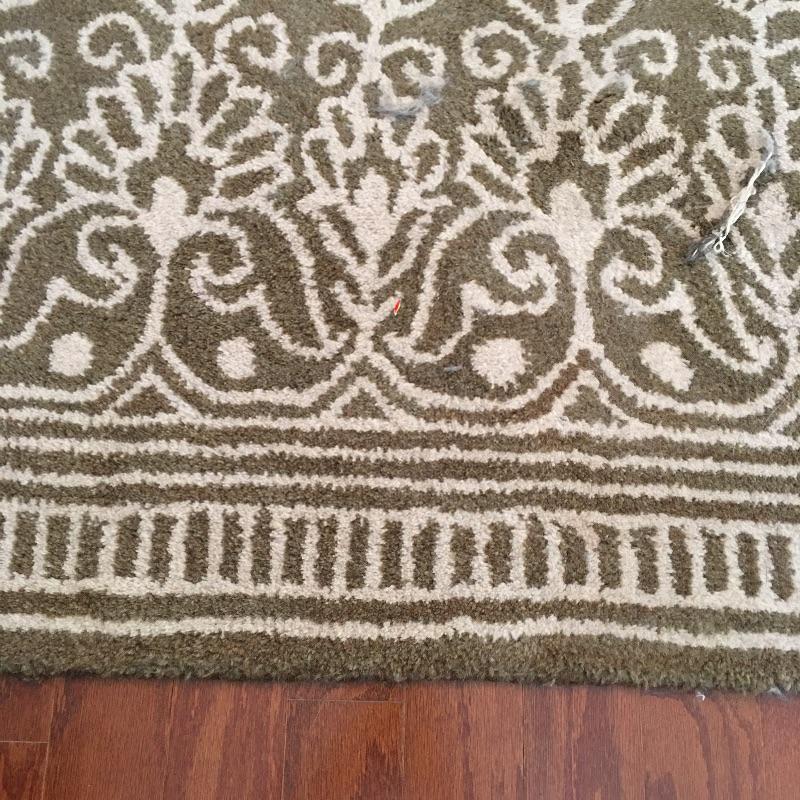 This pair of area rugs includes a Pier One 100% Wool rug (measures 96” x 120) made in India and a smaller Safavieh rug made in Turkey. A great way to make your home look good, protect your floors and keep your feet warm with these two area rugs. Largest rug has a couple of small stains.