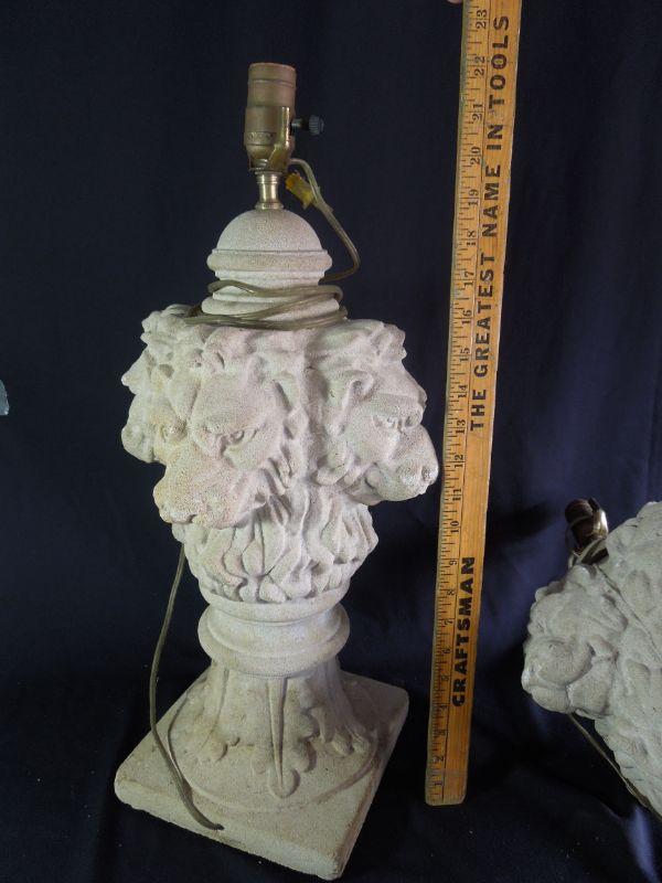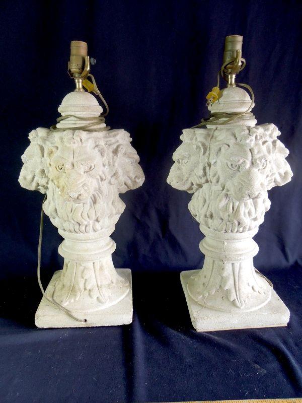 Lot 135: Pair of Cement Lion Head Lamp Bases 20th Century Neoclassical