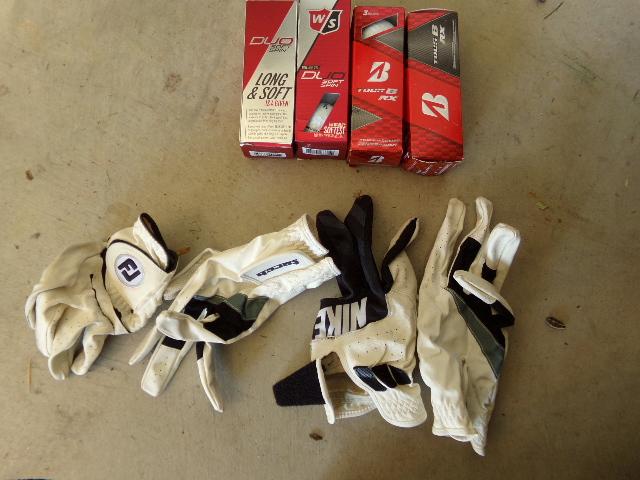 INCLUDES TAYLOR MADE 460 DRIVER & GOLF BALLS (SOME NEW IN BOX) AND NIKE GOLF GLOVES IN GOOD CONDITION