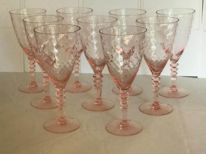 Set of 9 pink wine glasses. 7-3/4” tall, no chips, no cracks