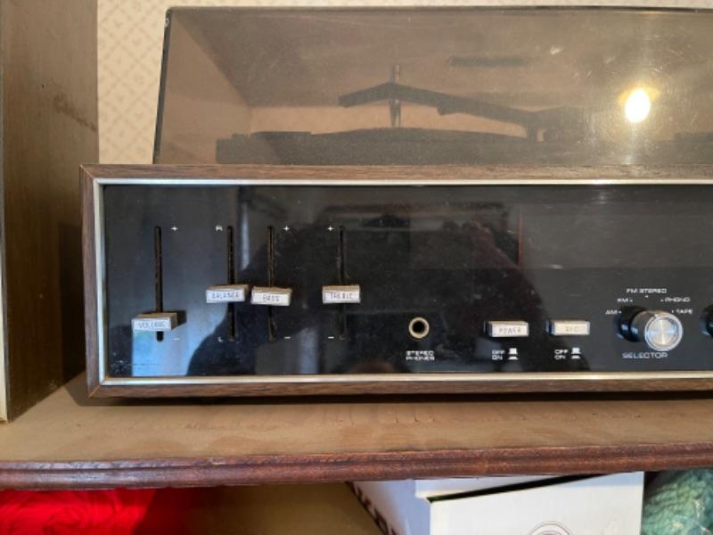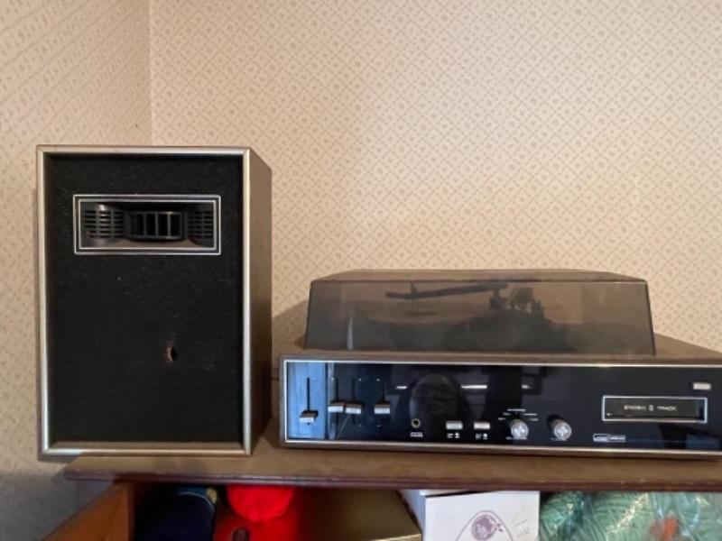 Lot 135. Stereo 8-track and record player with one speaker (Montgomery Ward)--$8