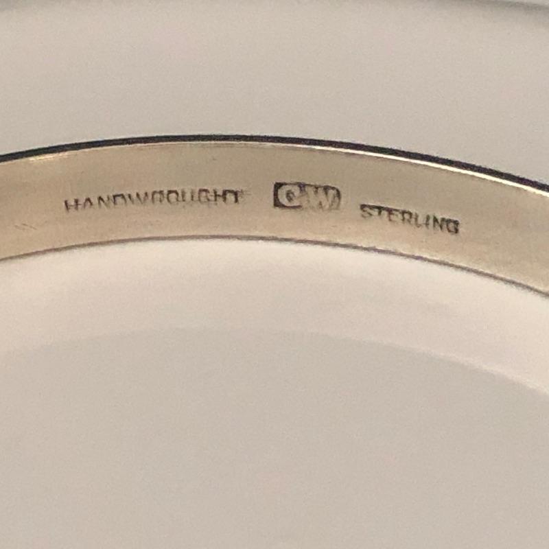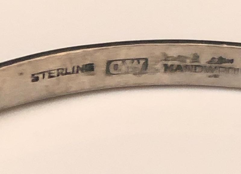 This trio of bangles are all marked sterling and look great worn together or singly. We have included a 4th sterling piece with this cute bird brooch which measures 1” x 1.5”.