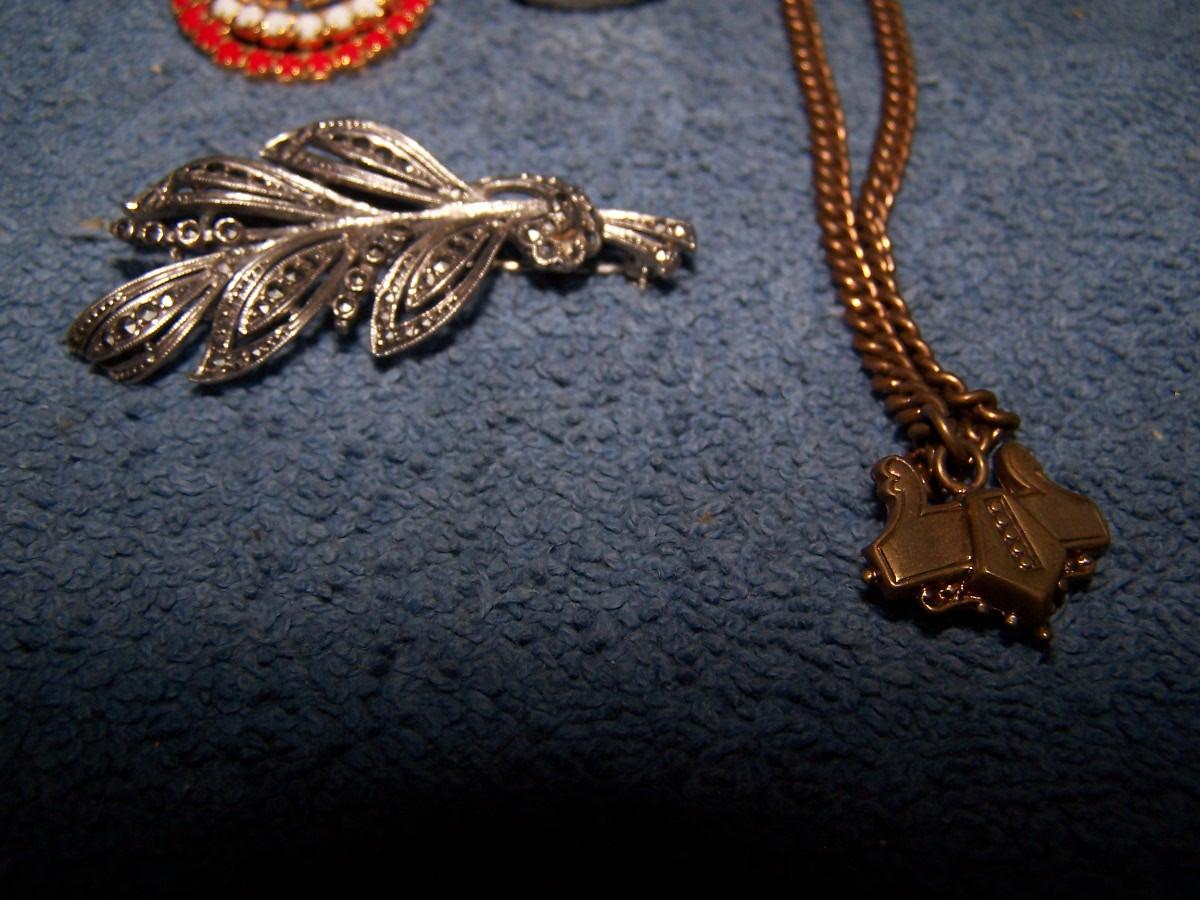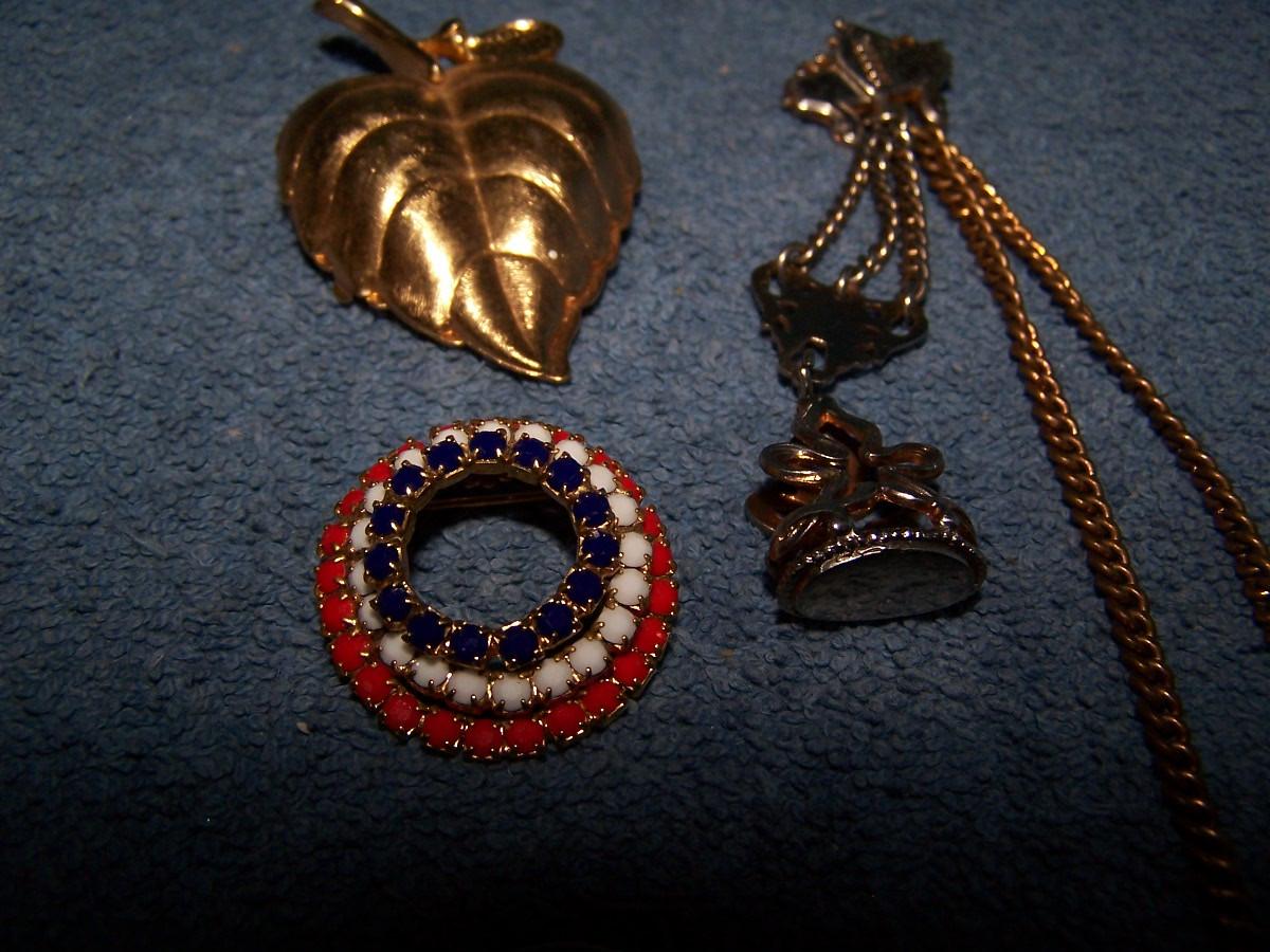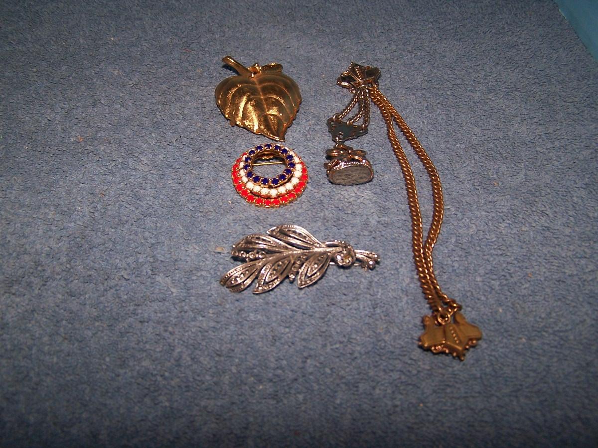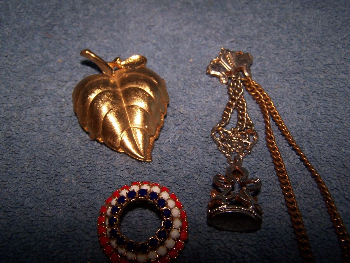 THESE IS SOME GREAT UNIQUE VINTAGE JEWELRY!!! PERFUME LEAF PIN IS PROBABLY AVON? AND IS 2'' TALL.. LIGHT WEAR..