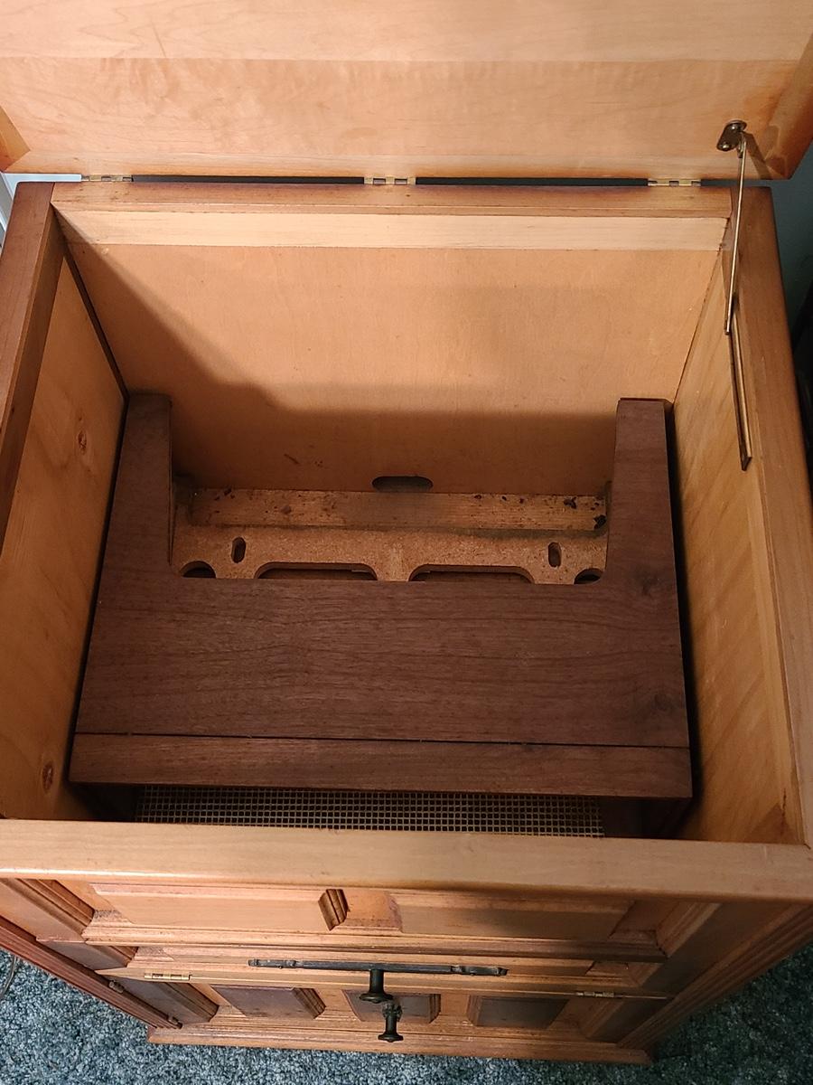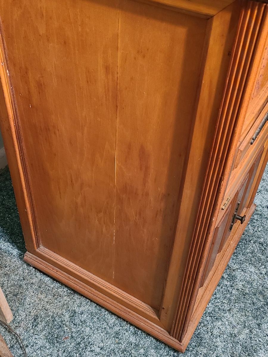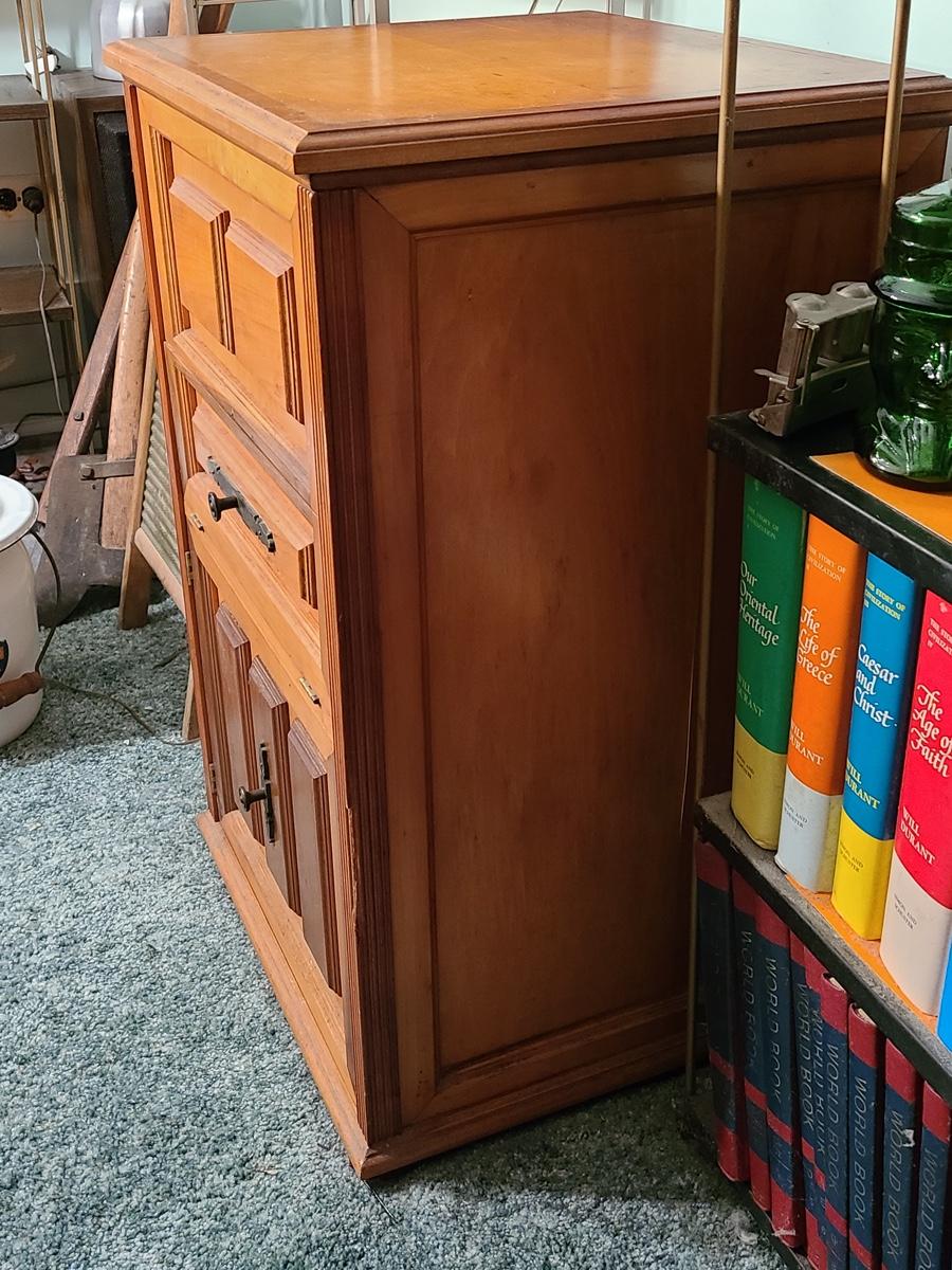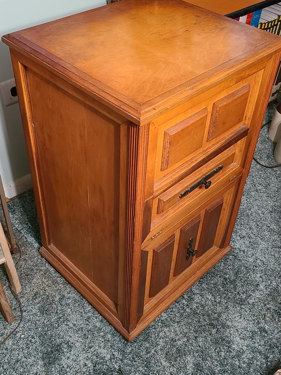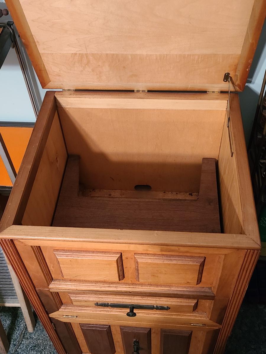 This neat little piece is the perfect size for any house and would look great for record player, as it fits records in the bottom, or could be up-cycled into bar. The bottle is not included. The sides do show some wear as there is a split in the wood that would need to be glued. The pictures show condition, measurements if taken, and what is included in the lot. Due to the large amount that we photograph and the time frame, we are not always able to take measurements. All items unless noted, are pre-owned and have been used. If you purchased furniture, you must bring help. We do not allow one person to carry large furniture out on their own. Bring help, tools and a truck for the safety of our client’s homes, and your personal safety. Company policy. Thank you.