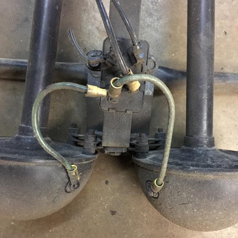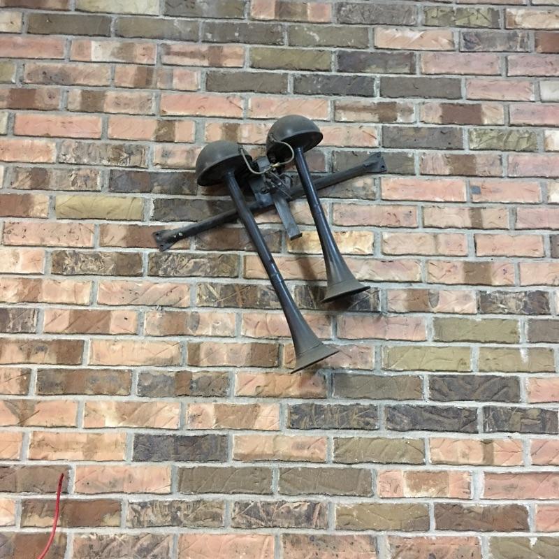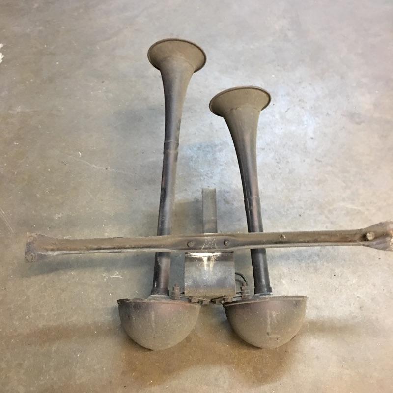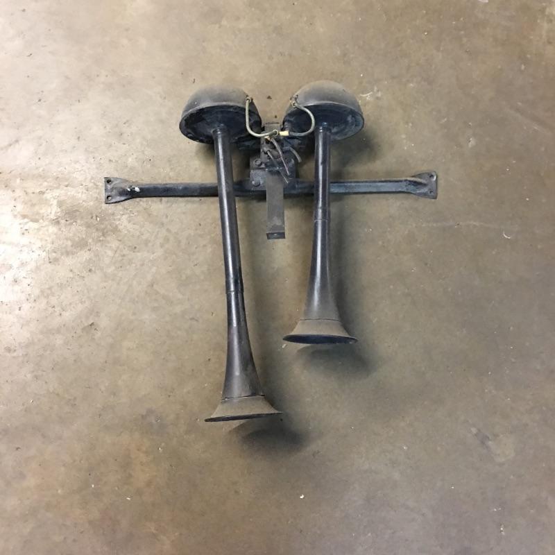 Pair of large vintage horns. A great pair of vintage horns with mounting bracket. Keep people on there toes with these awesome vintage horns.