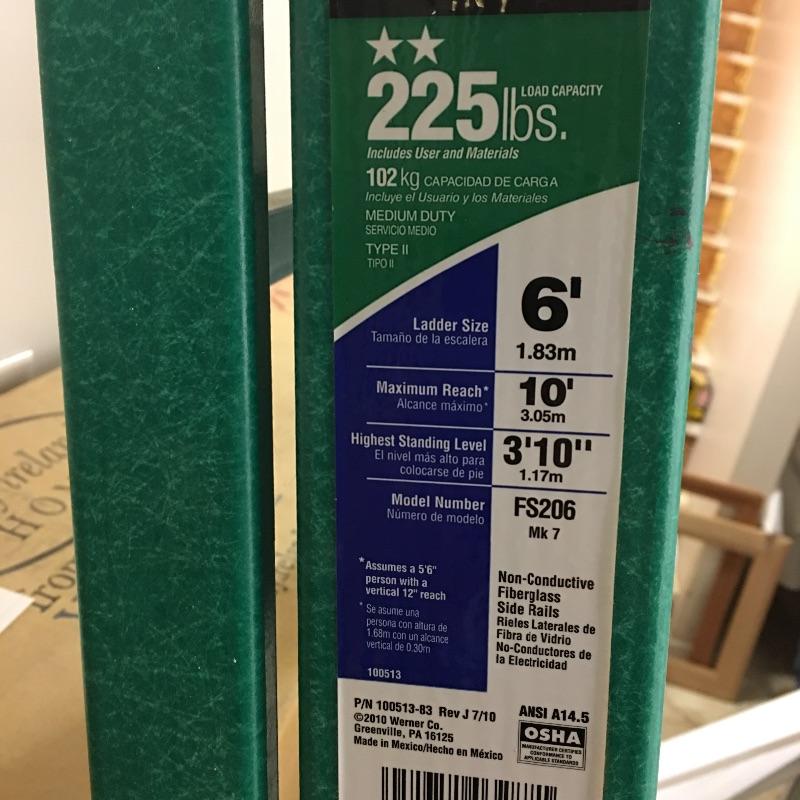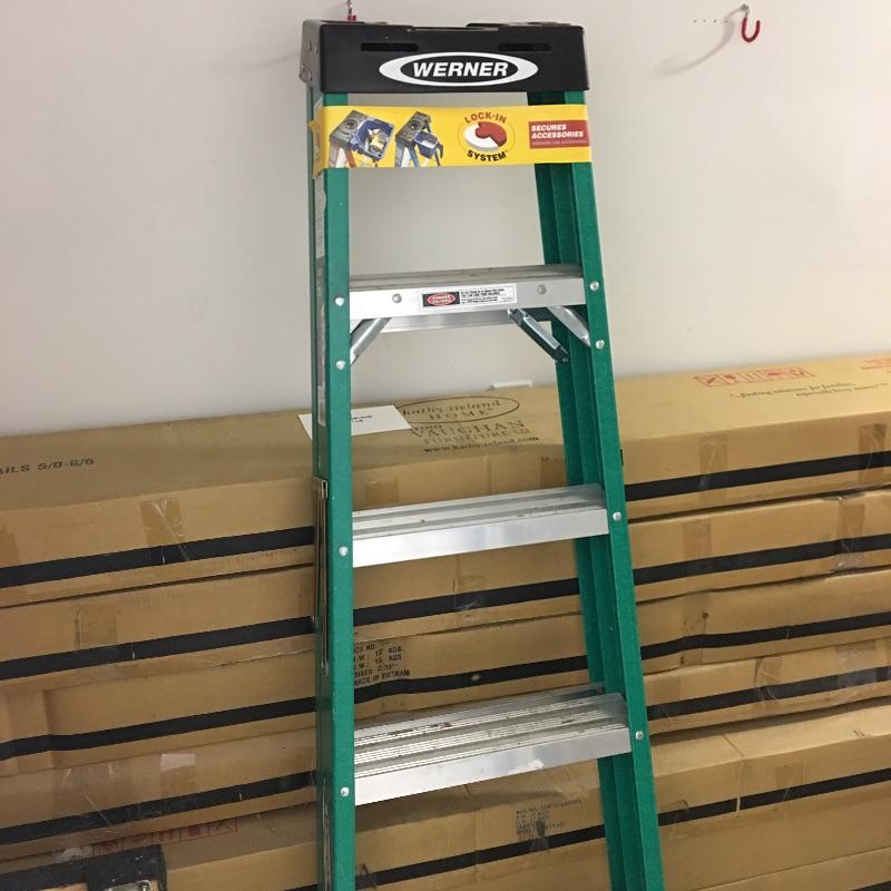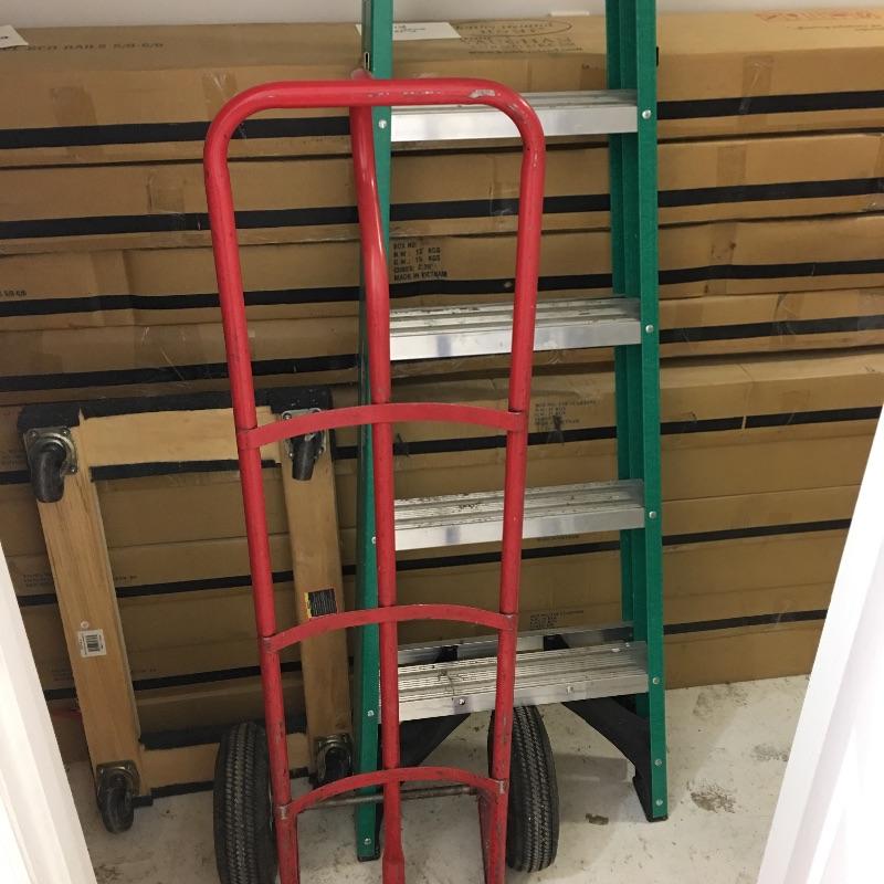 Werner fiberglass 6’ ladder, hand truck, furniture dolly and luggage dolly.