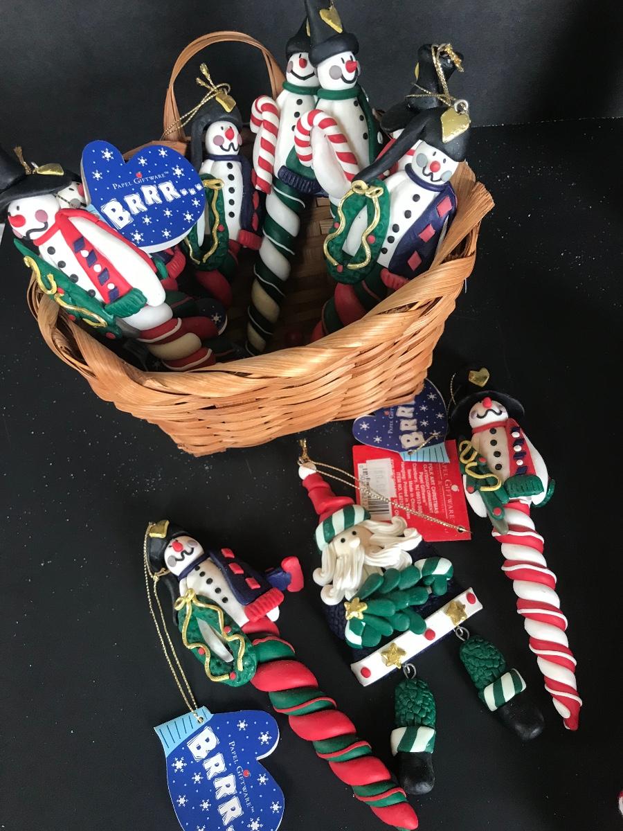 Bristly tree, soft snowman and clay like tree ornaments. Please see all pictures for content of the lot, condition of the lot, and measurements if taken. Pictures are the best representation of the items listed and items are untested unless indicated in description. Thank you for looking and have fun bidding!