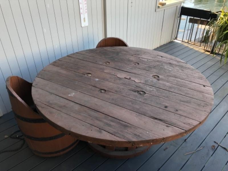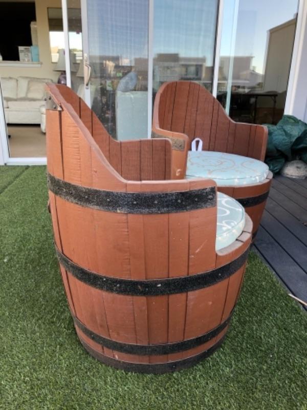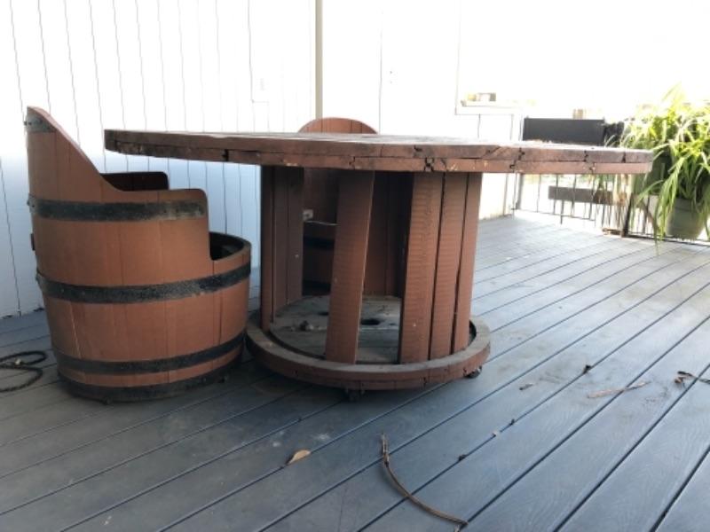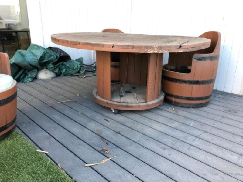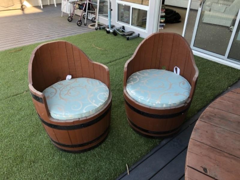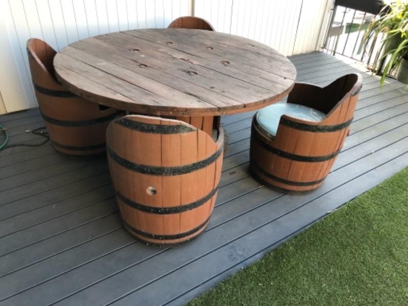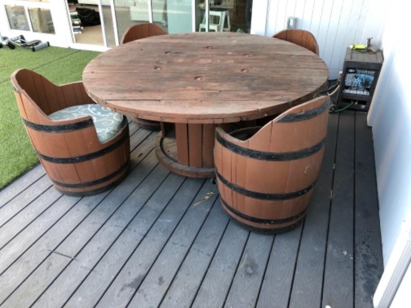 Lot 135U. Barrel table and four chairs with cushions--$275