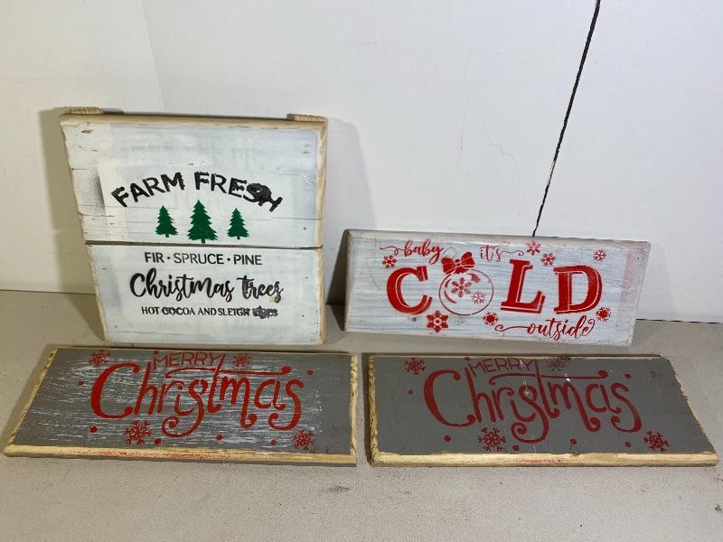 Lot# 136 4 Vintage look Winter Christmas Signs Handmade