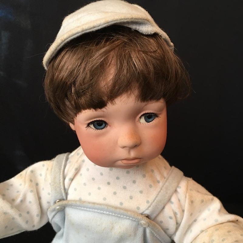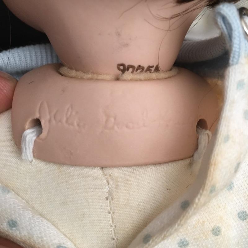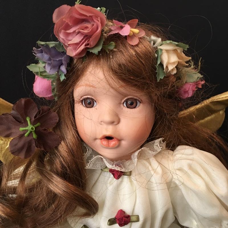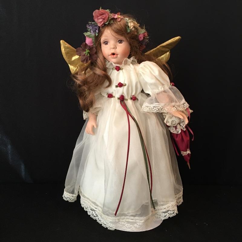 Lot includes a numbered Julie Good Kruger boy doll and a Large angel doll (no signatures found). The Kruger doll clothes are dirty and could use a wash. Numbered 9775A. The larger doll has detachable angel wings and a beautiful face. She measures 17” tall.