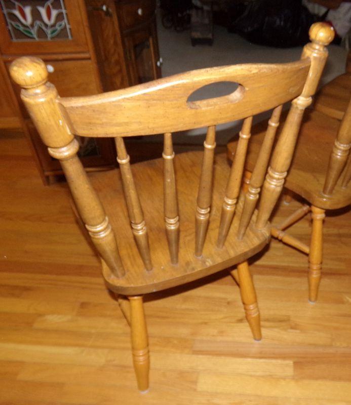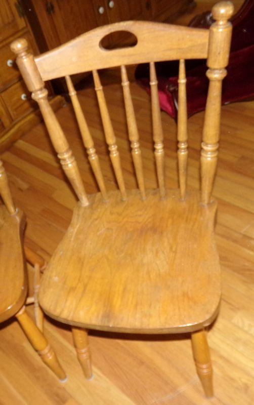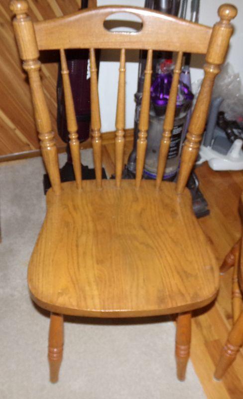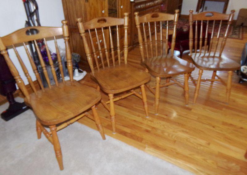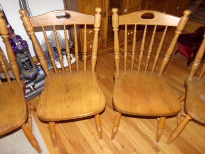 HEAVY SOLID OAK CHAIRS. 1 HAS A LOSS OF FINISH THE OTHERS ARE GOOD-VG CONDITION