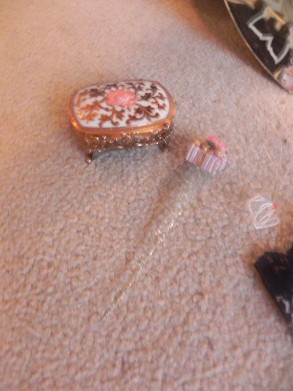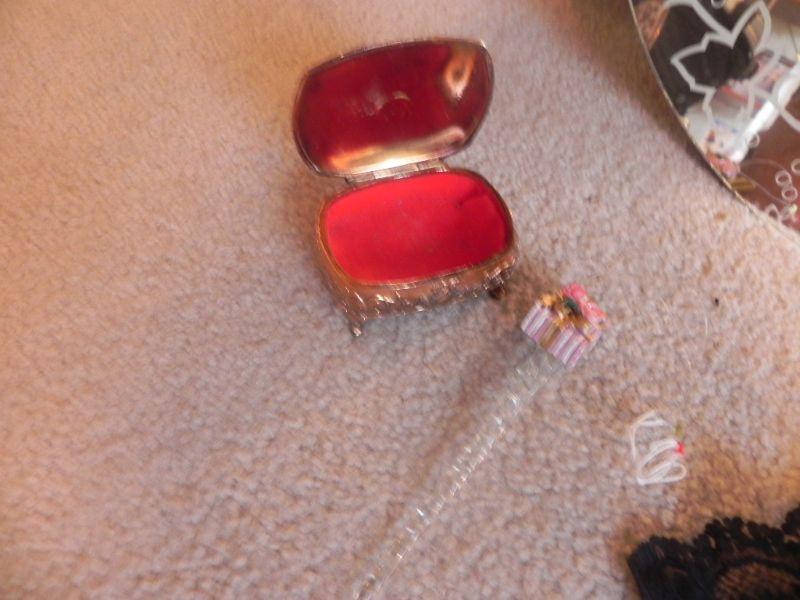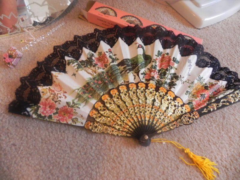 TRINKET BOX, HAND BLOWN GLASS FLOWER, FAN,