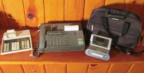 ELECTRIC CALCULATOR, FAX MACHINE, SOFT SIDED CASE AND A SMARTER IMAGE ALARM CLOCK