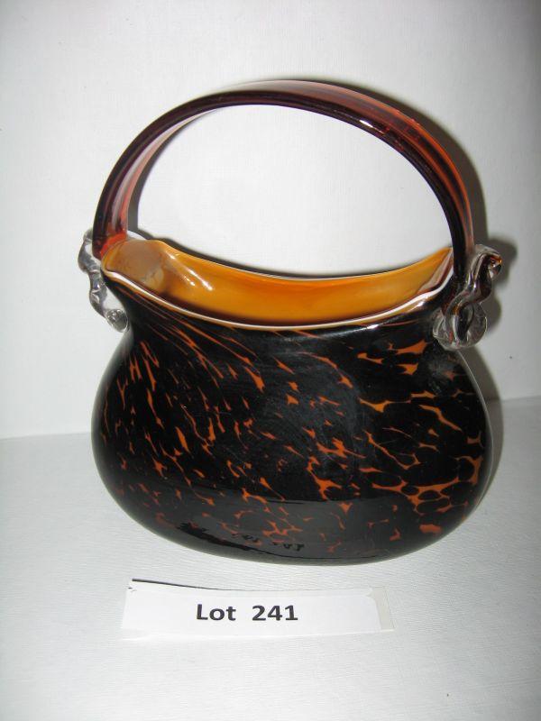 LOT 136  Tiger Brown Hand Blown Glass basket/purse