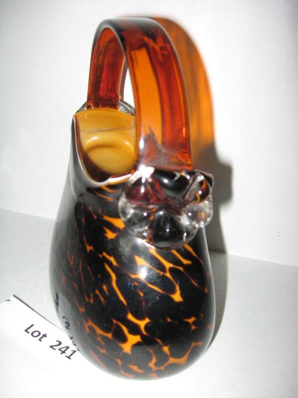 LOT 136 Tiger Brown Hand Blown Glass basket/purse