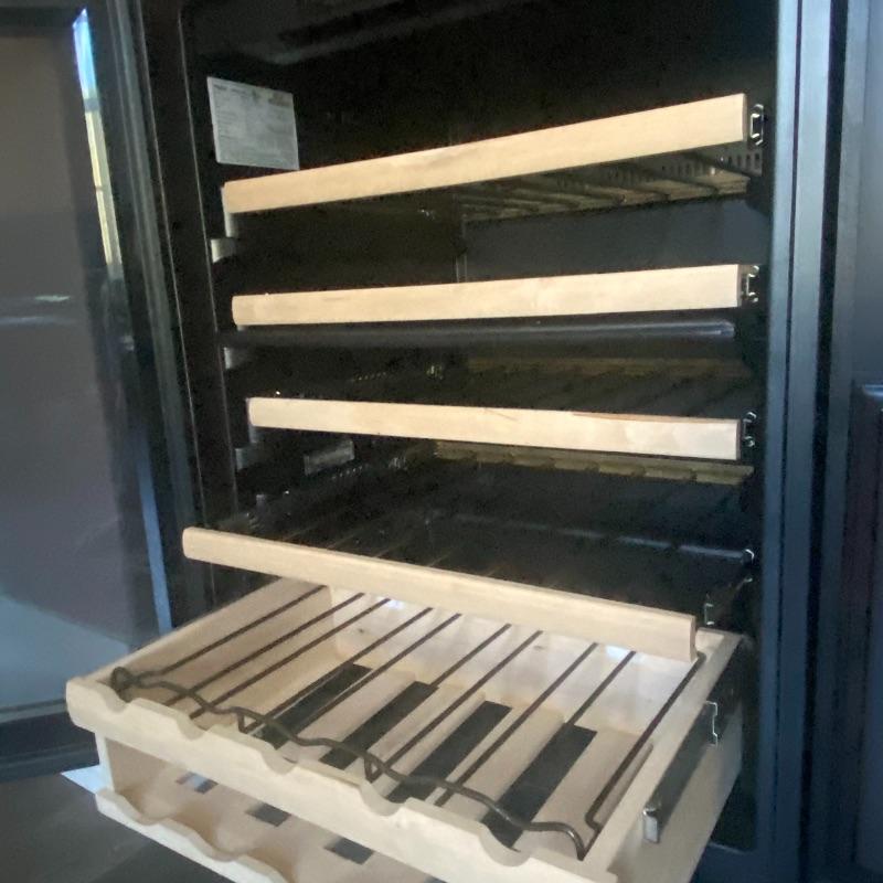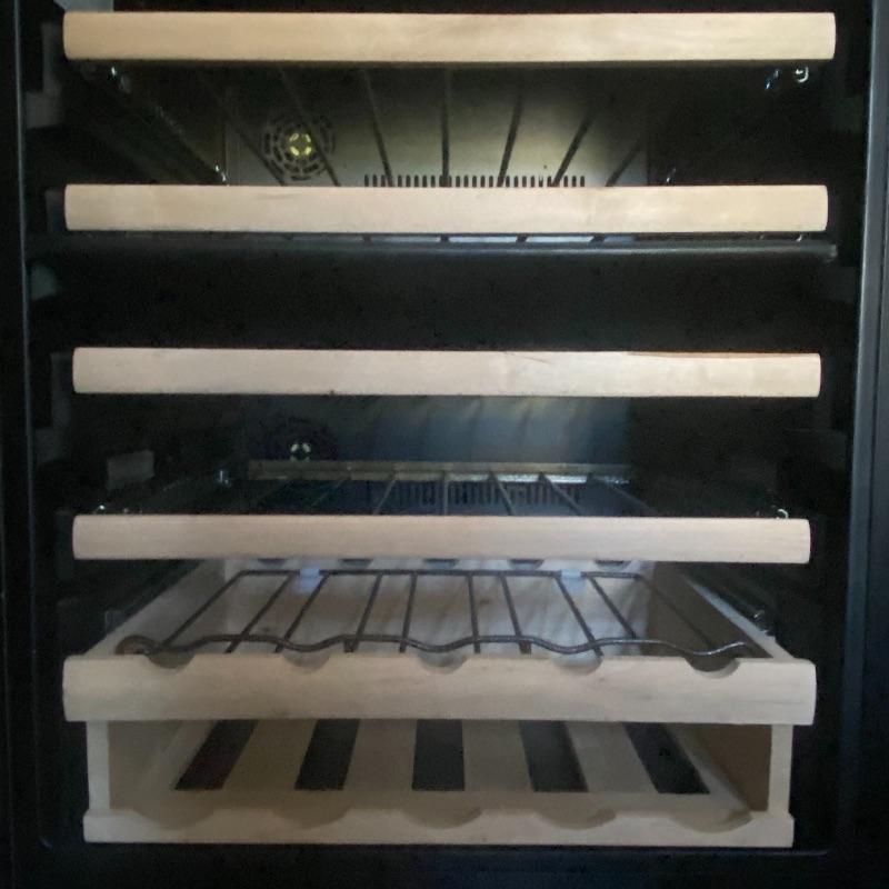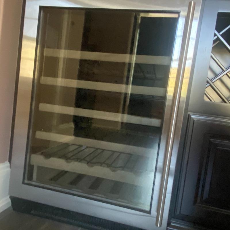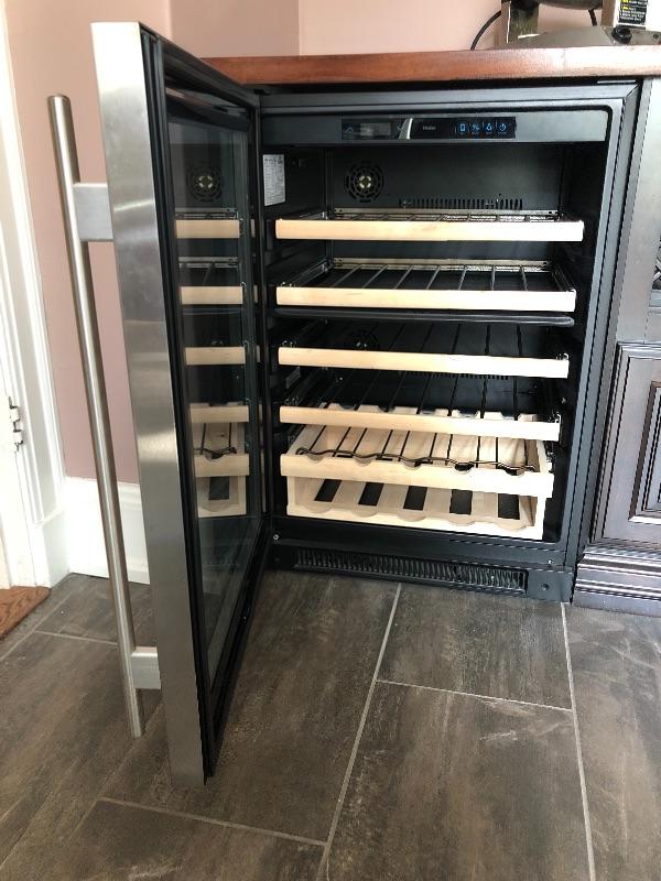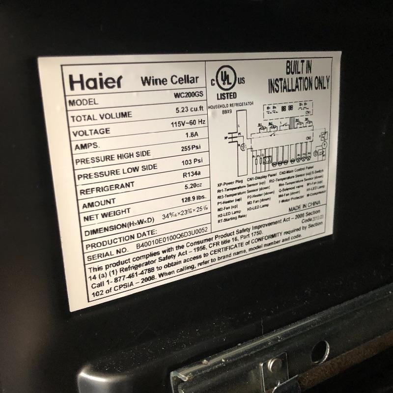 This Haier wine cellar is a great place to store you favorite wines. Be aware though, it is currently not working so it will need a repair to get it cooling properly. Hopefully you'll get yourself a deal! Has five slidable racks. See photos. Model WC200GS. Measurements are 24”x34”. Local pick up only.