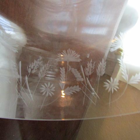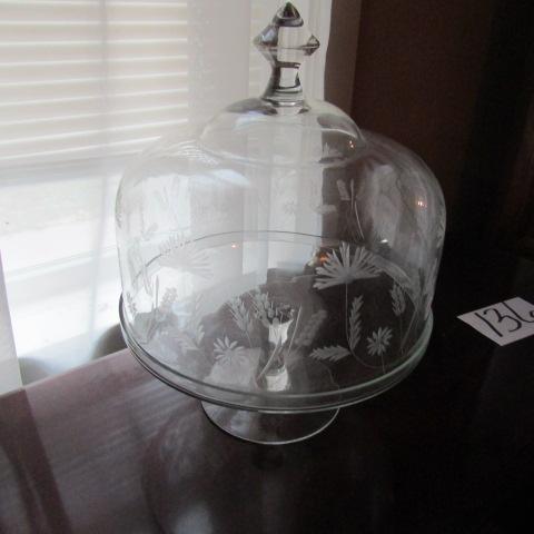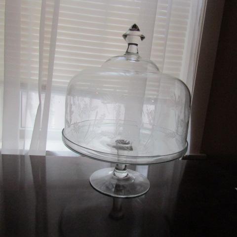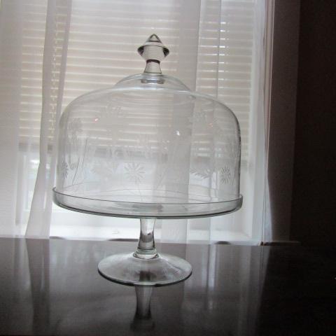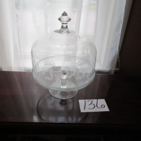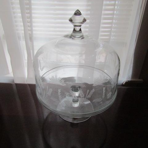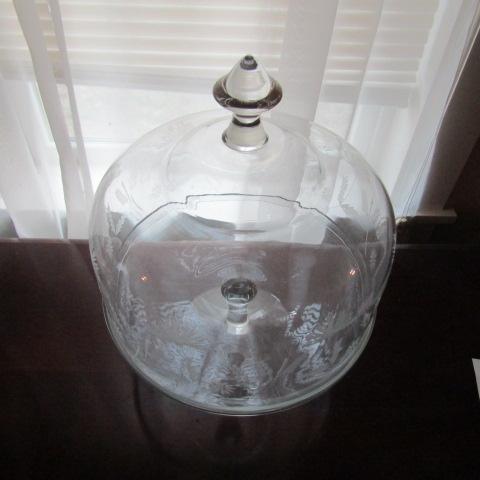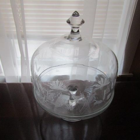 LARGE ETCHED GLASS CAKE PLATE WITH LID
