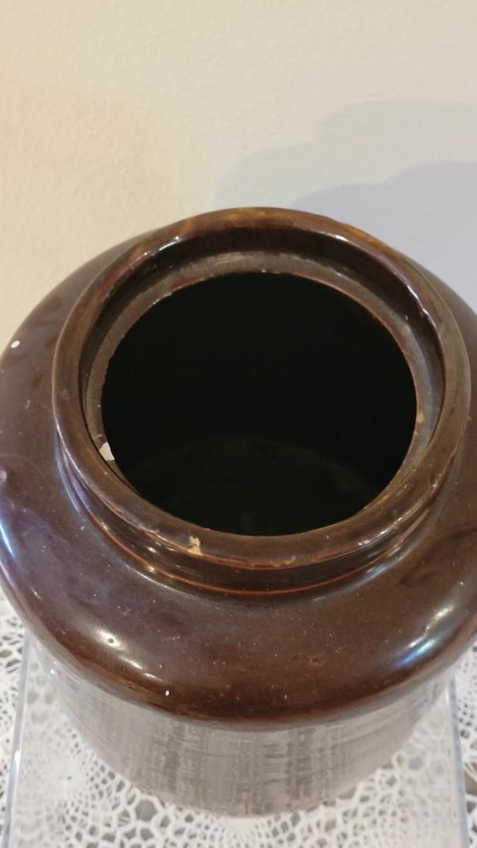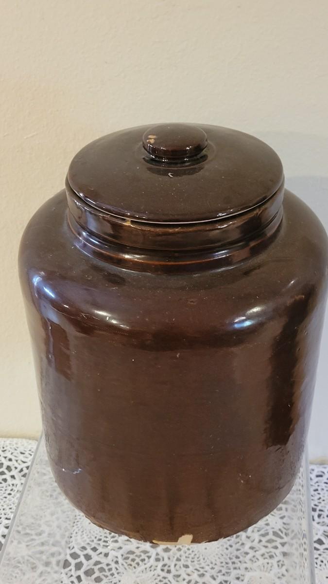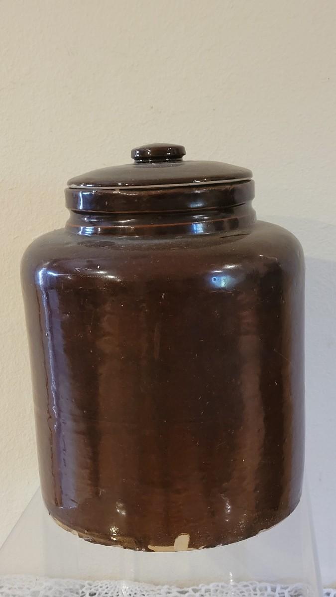 Lot 136: Antique Brown Glaze Stoneware Crock with Lid