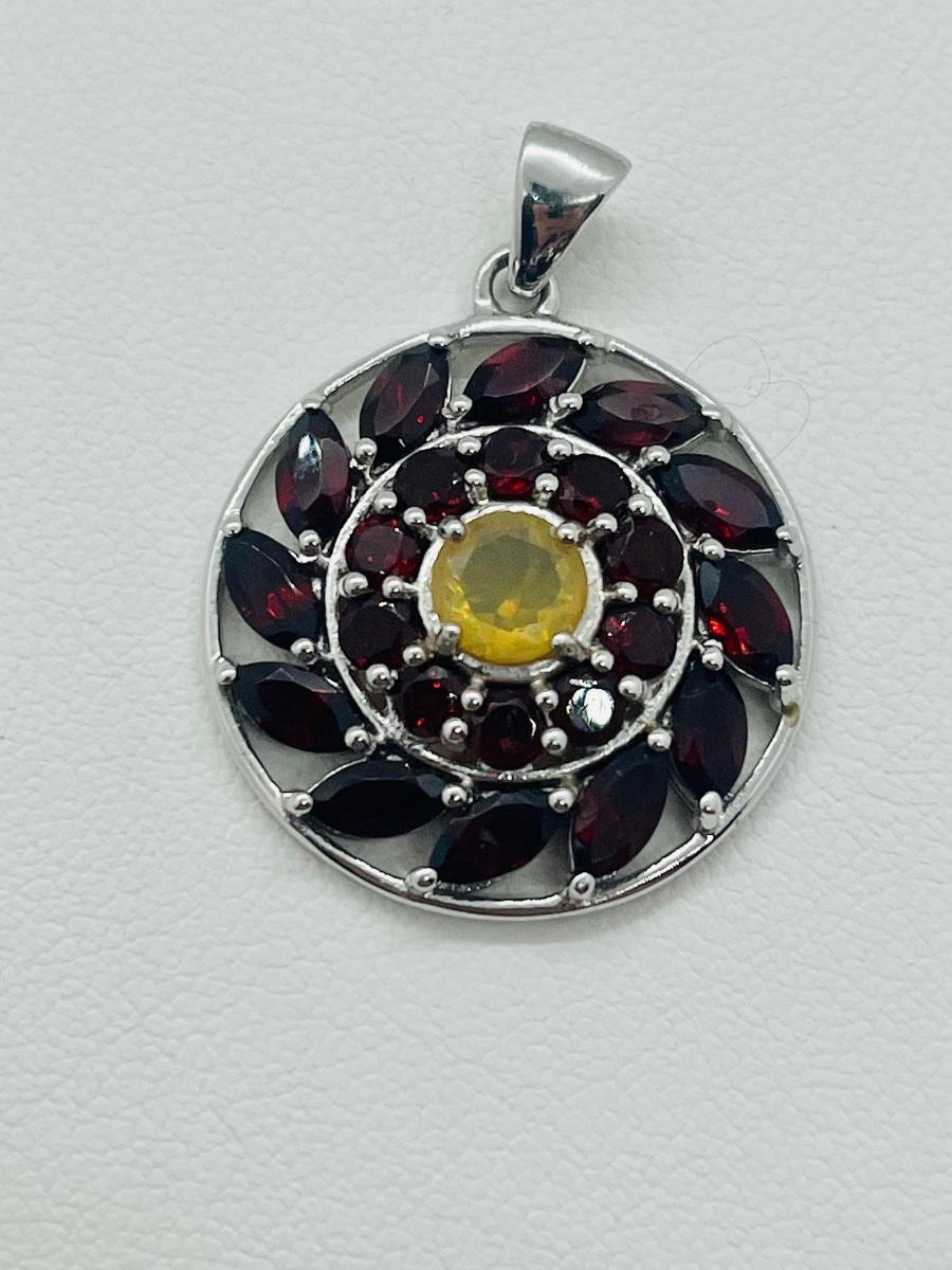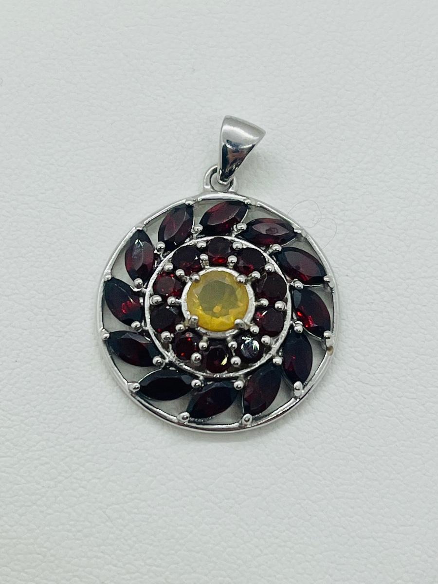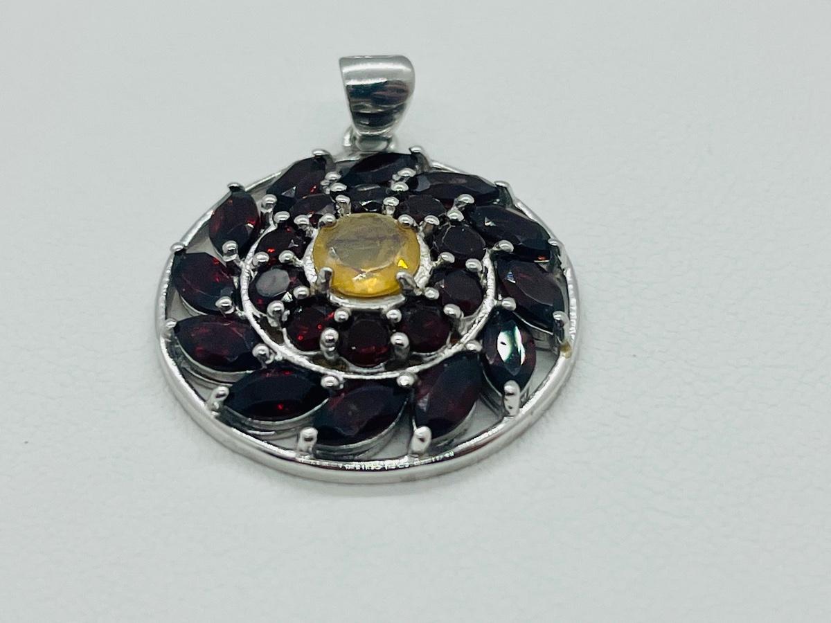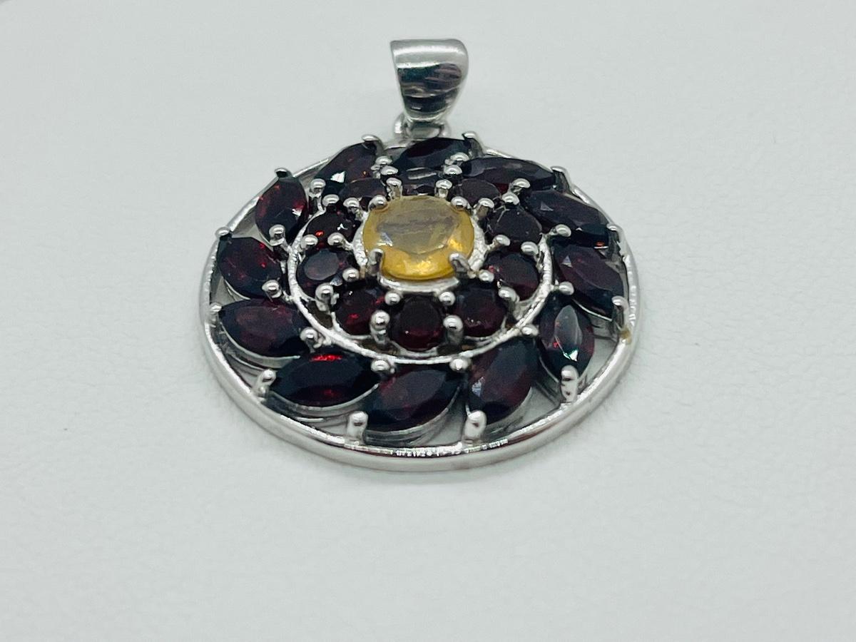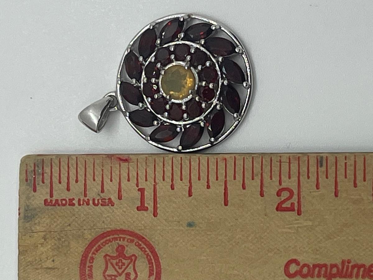 Lot 136: Sterling Pendant with Garnets & Lemon Citrine Center