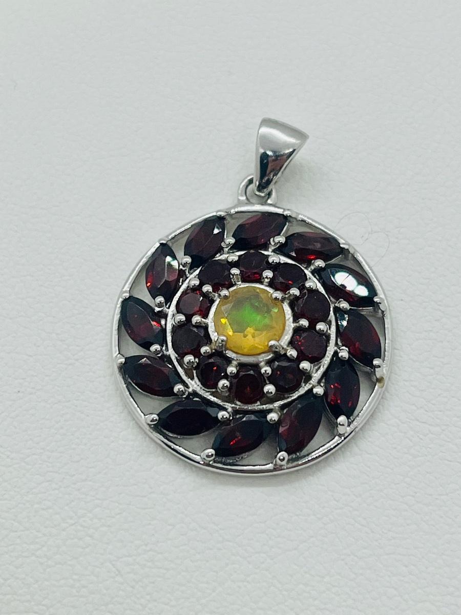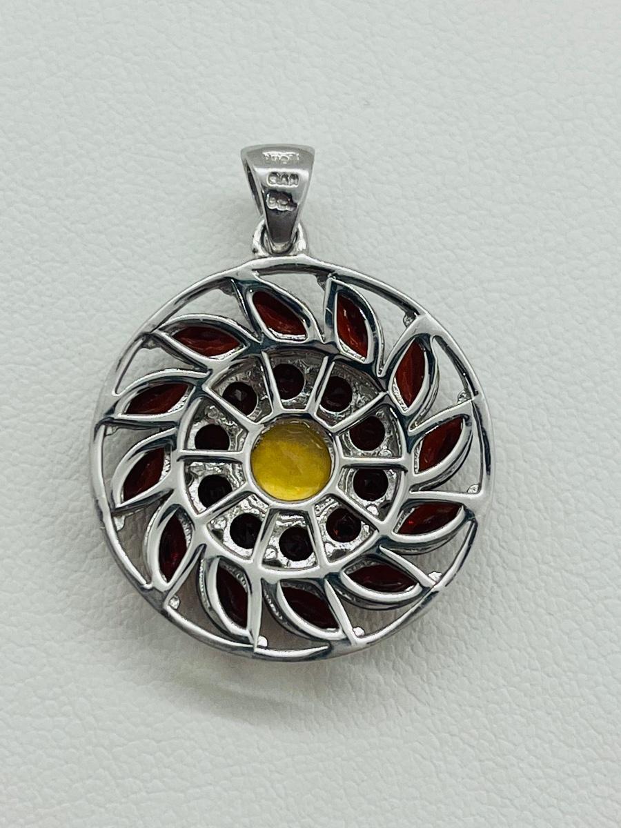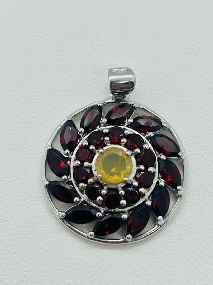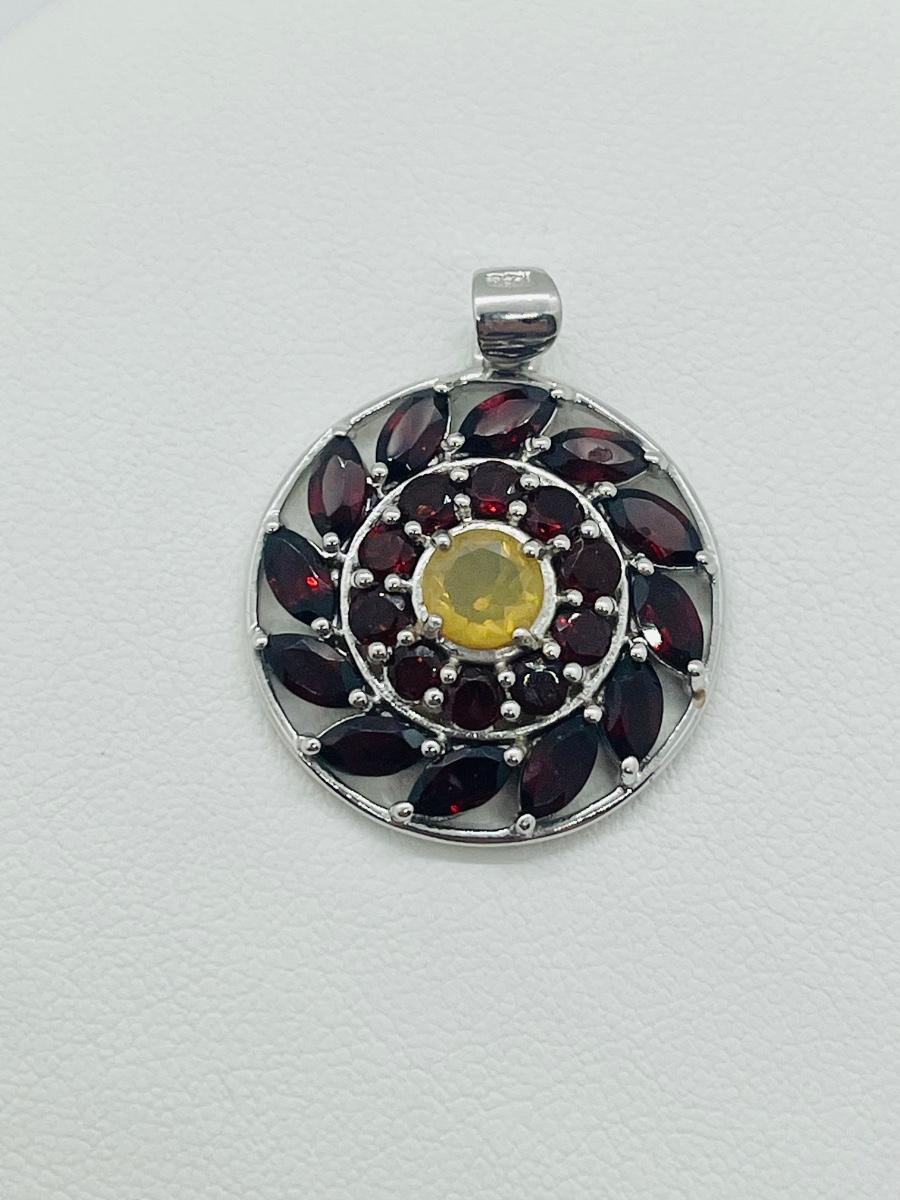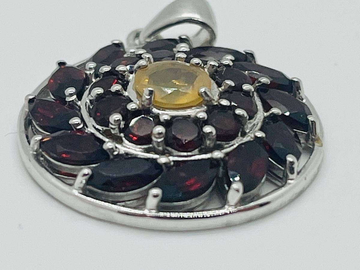 Lot 136: Sterling Pendant with Garnets & Lemon Citrine Center