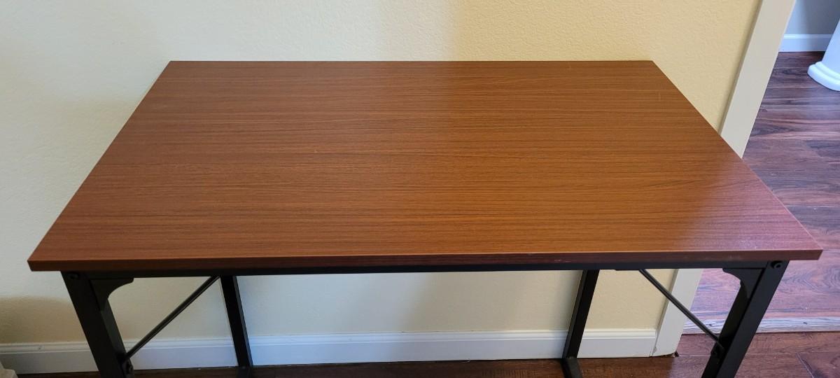Lot 136: Modern Wood Table w/ Metal Accent Base