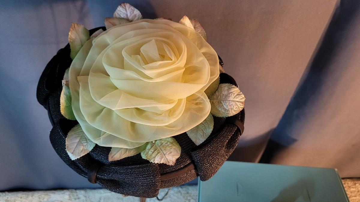 Lot 136: Black Bows & Yellow Rose Hat with Box