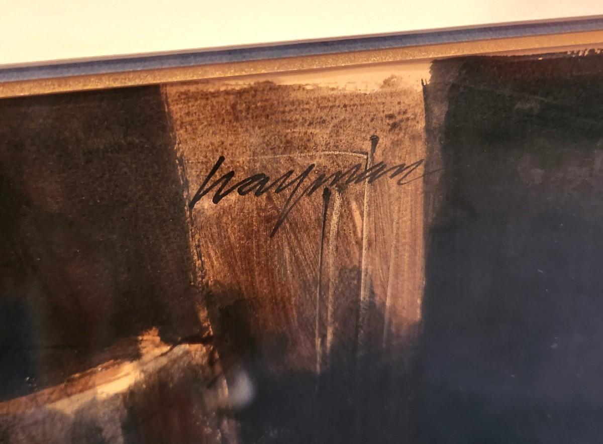 Framed, double mat - abstract watercolor - Man w/dog - indistinguishable signature "Nayman?" 25.5" across, 22" tall, good condition.