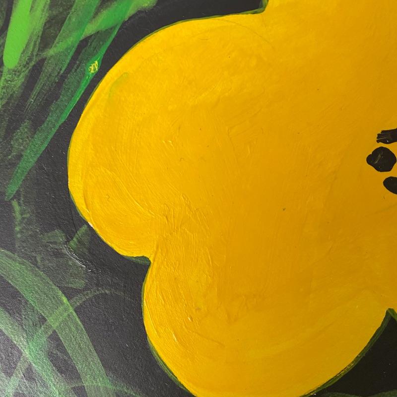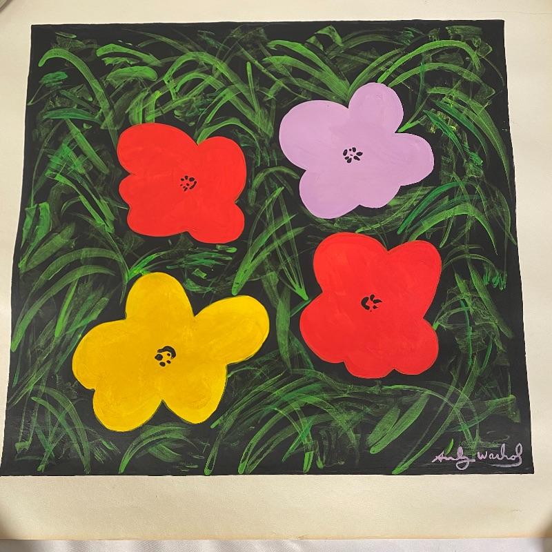 This lot includes a painting in the style of Andy Warhol from his “Flowers” series. The painting is an oil painting on paper. The paper has some stained edges (see pictures). It measures 22in x 24in.