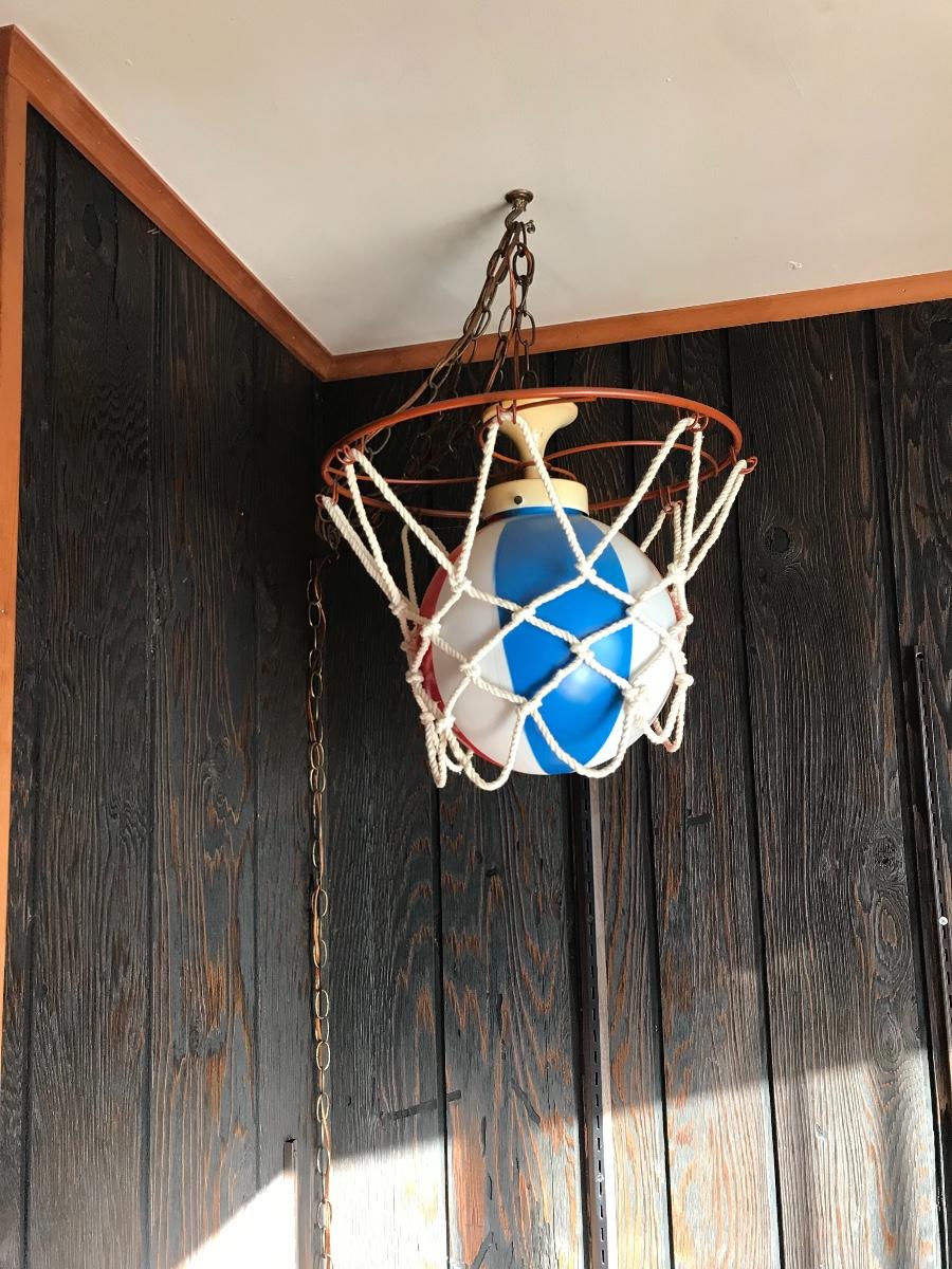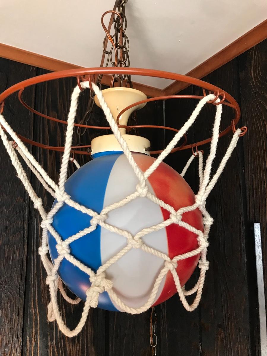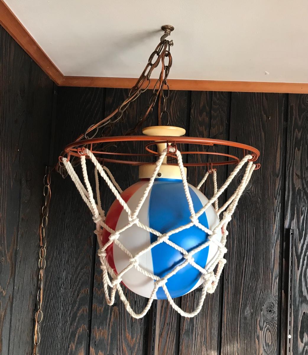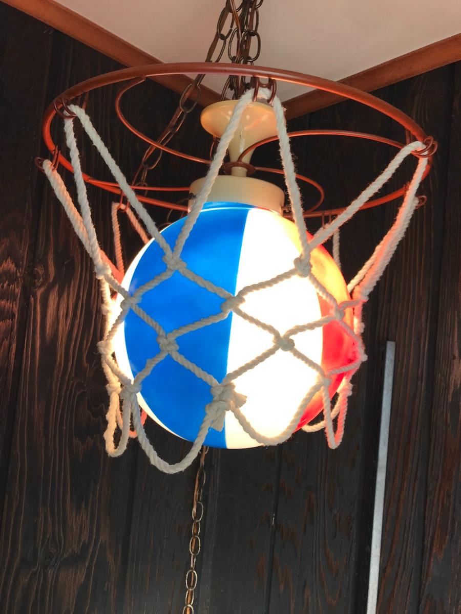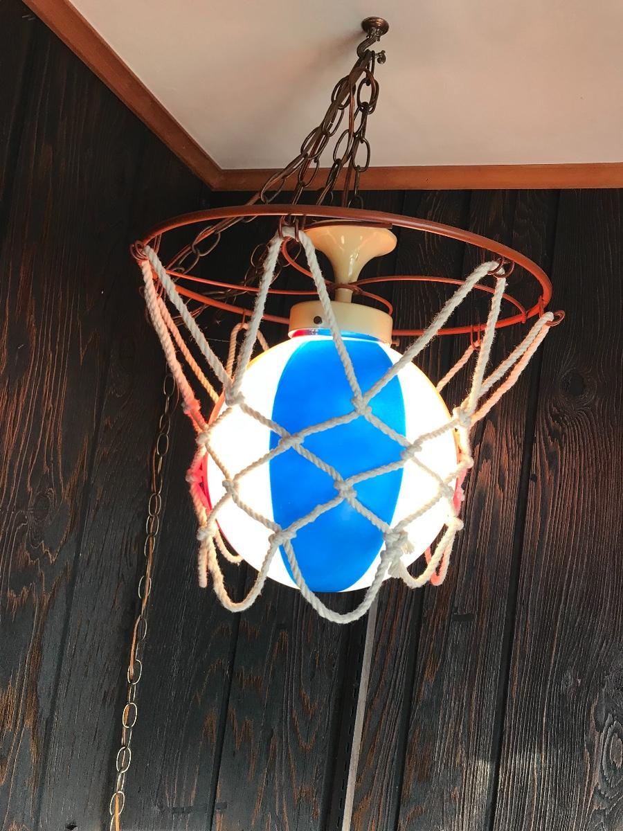 Awesome Working Vintage Hanging Basketball In Hoop Lamp - lamp hangs from hook on ceiling with attached chain and plugs into wall outlet. The pictures show condition, measurements if taken, and what is included in the lot. Due to the large amount that we photograph and the time frame, we are not always able to take measurements. All items unless noted, are pre-owned and have been used. If you purchased furniture, you must bring help. We do not allow one person to carry large furniture out on their own. Bring help, tools and a truck for the safety of our client’s homes, and your personal safety. Company policy. Thank you.