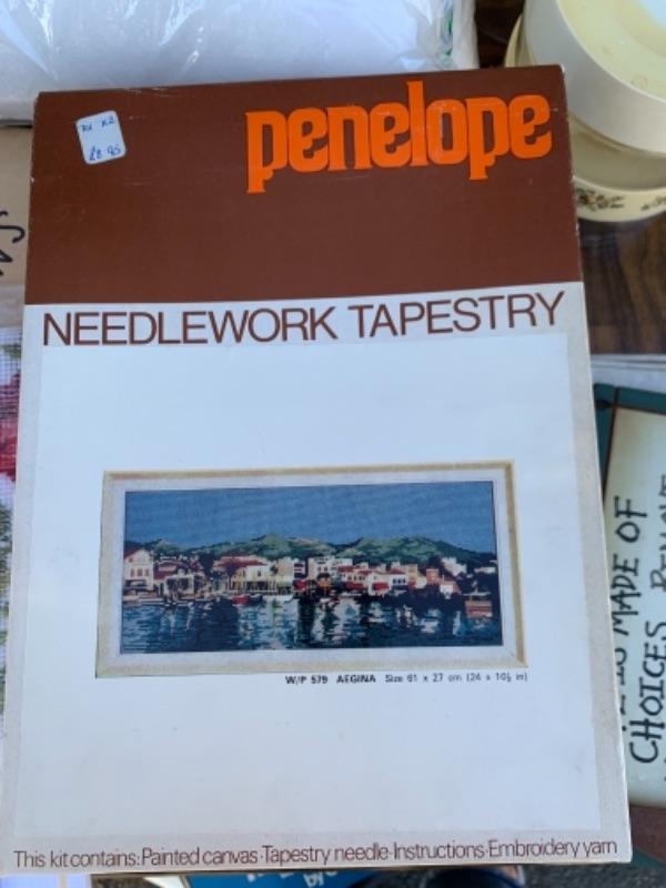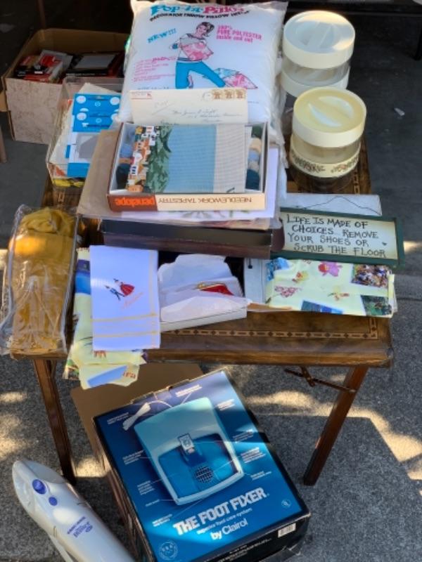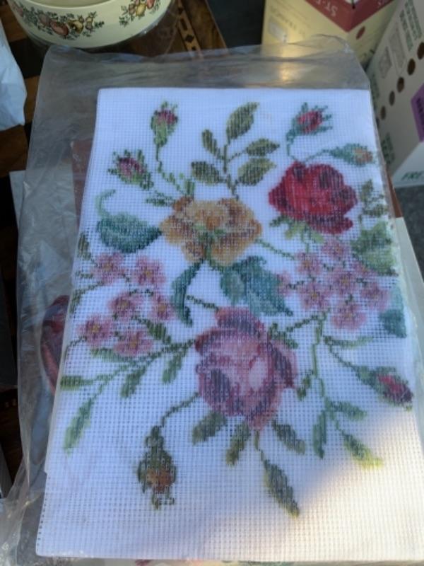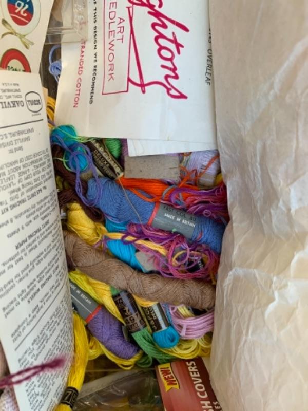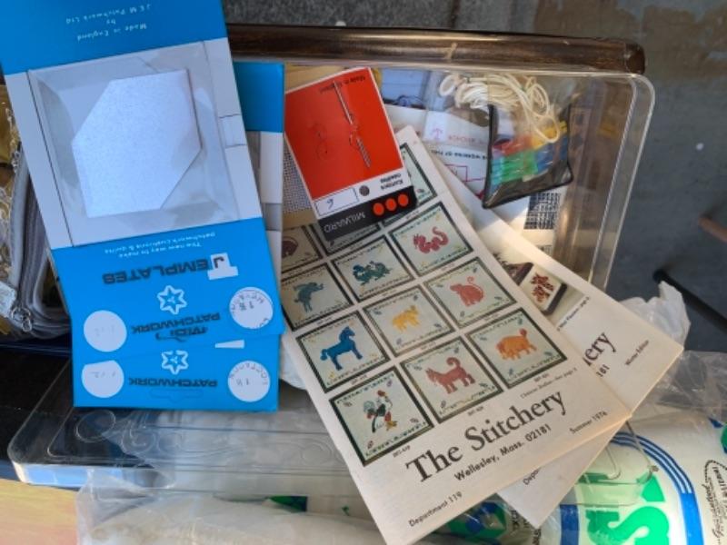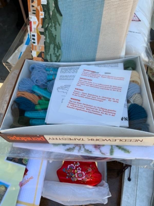Lot 136. Crafts, needlepoint, and sewing supplies, foot bath--$30