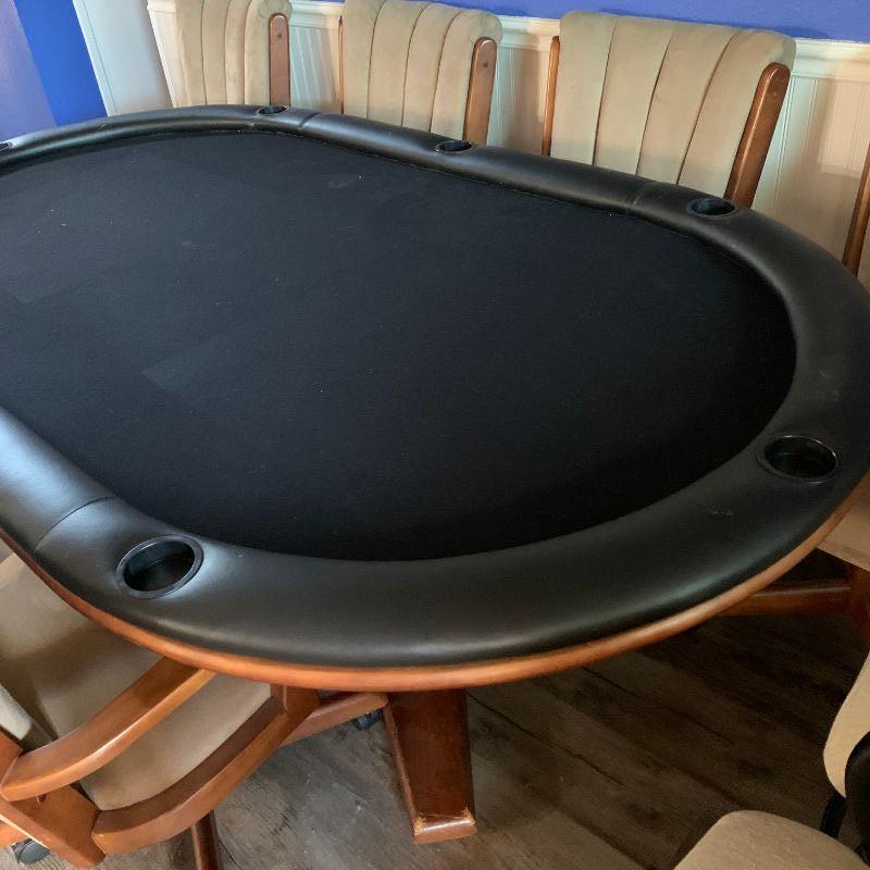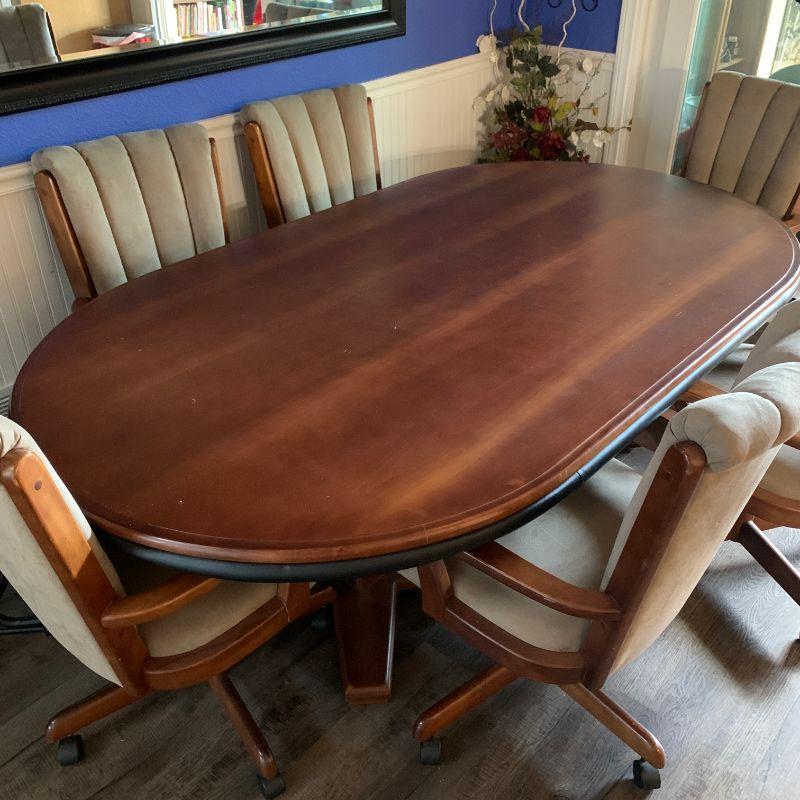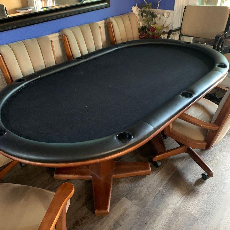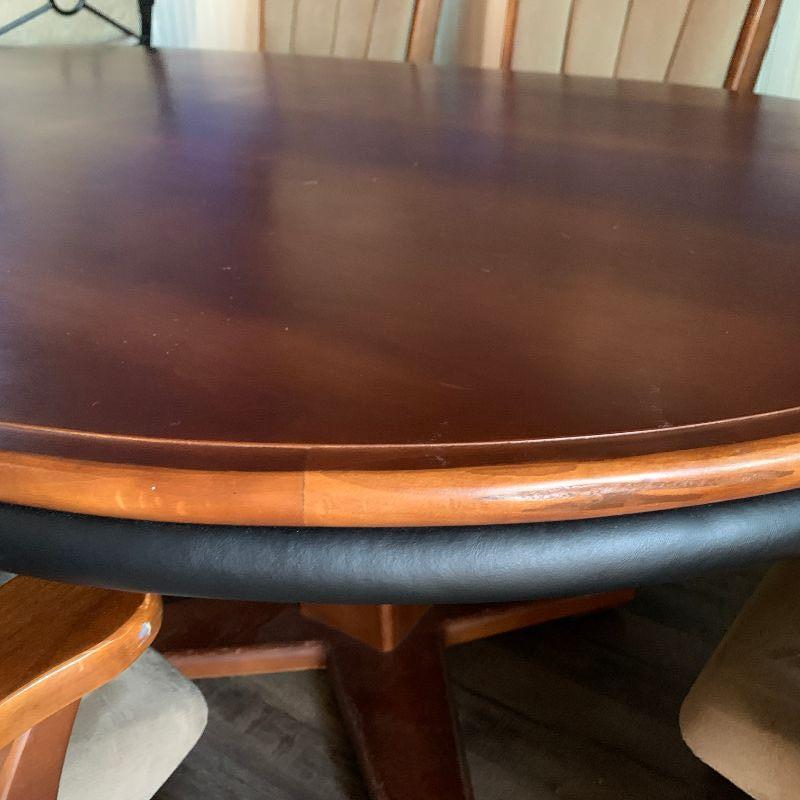Lot 136 dining table, six chairs table is reversible with a gaming table on second side