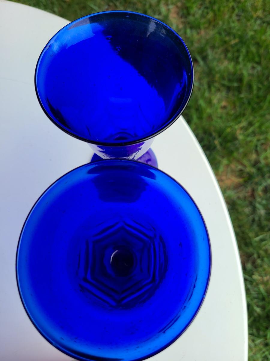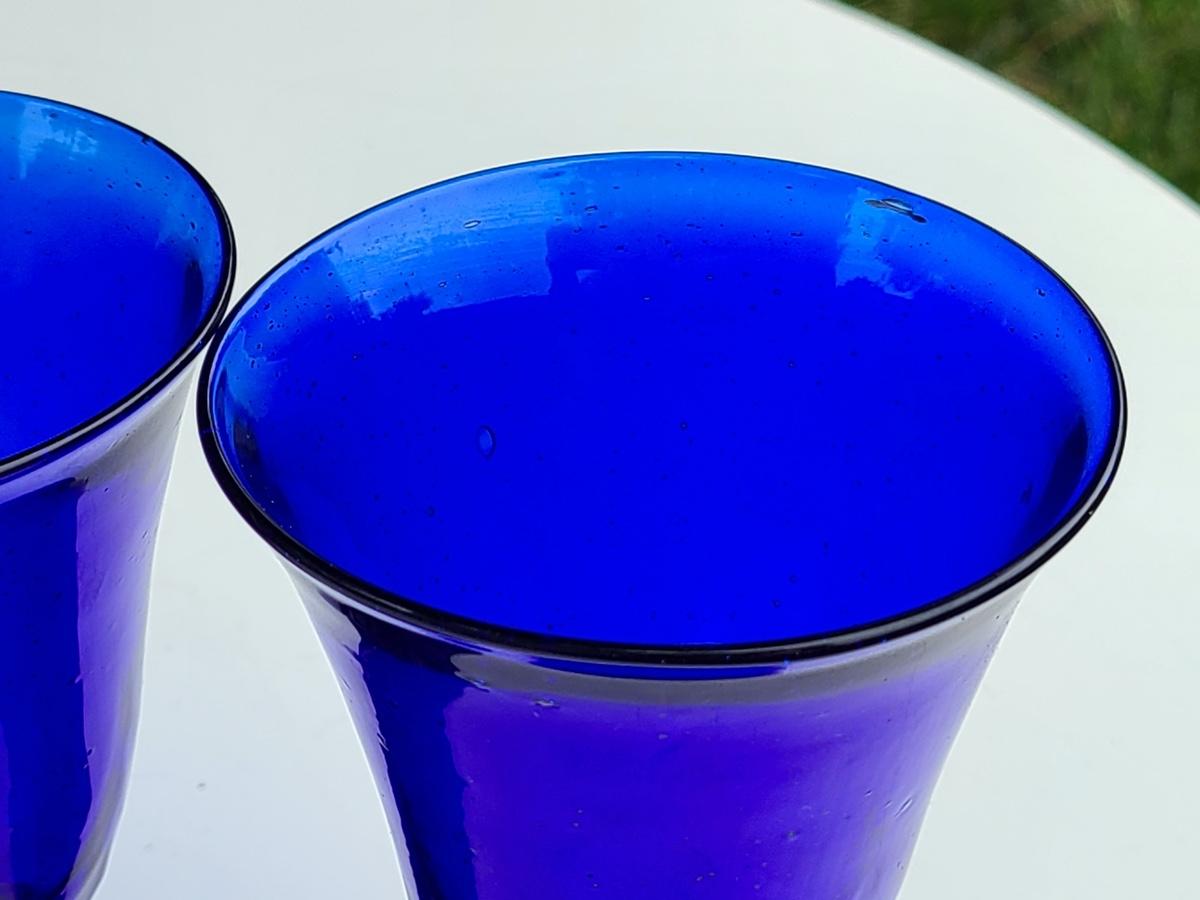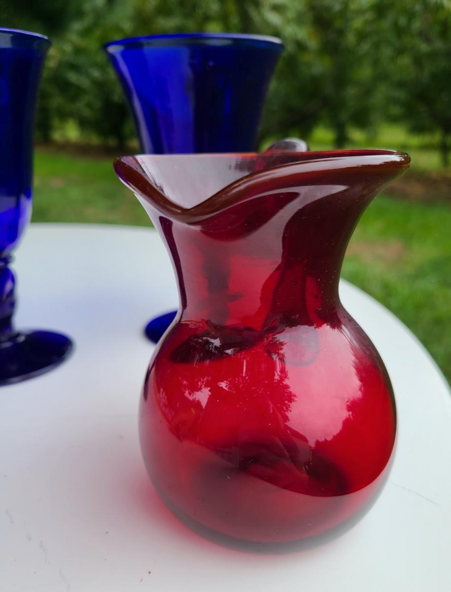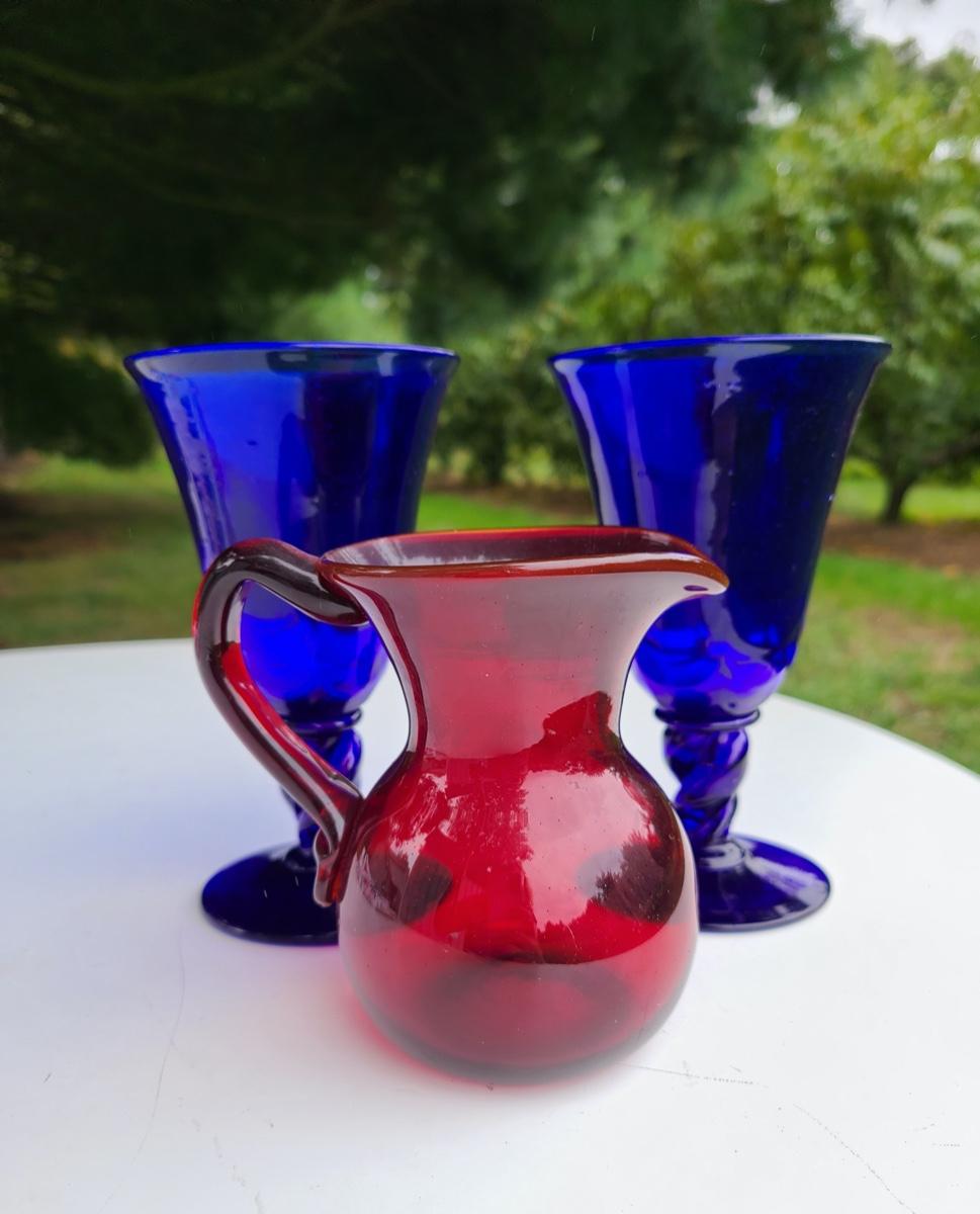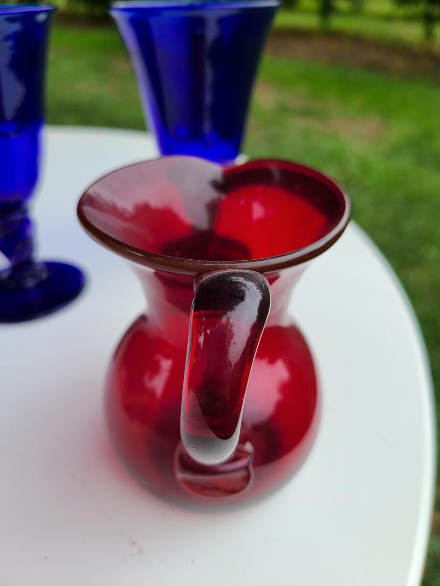 Lot 136: Handblown Glass Cobalt Blue Goblets and Small Ruby Red Pitcher