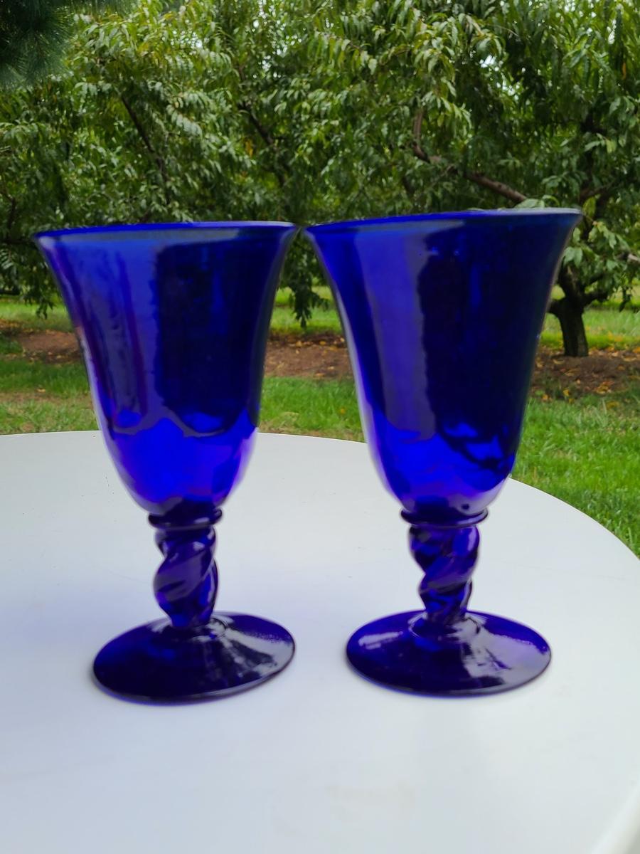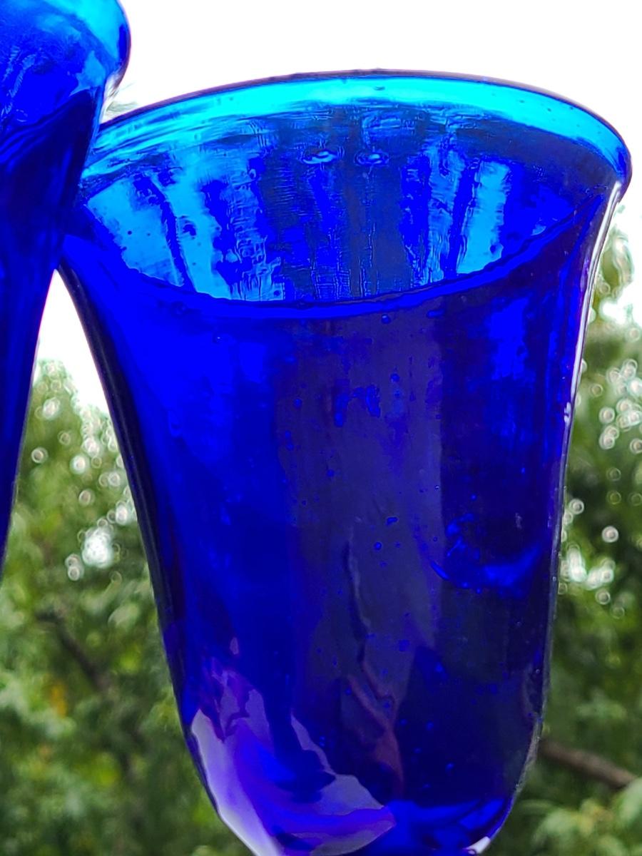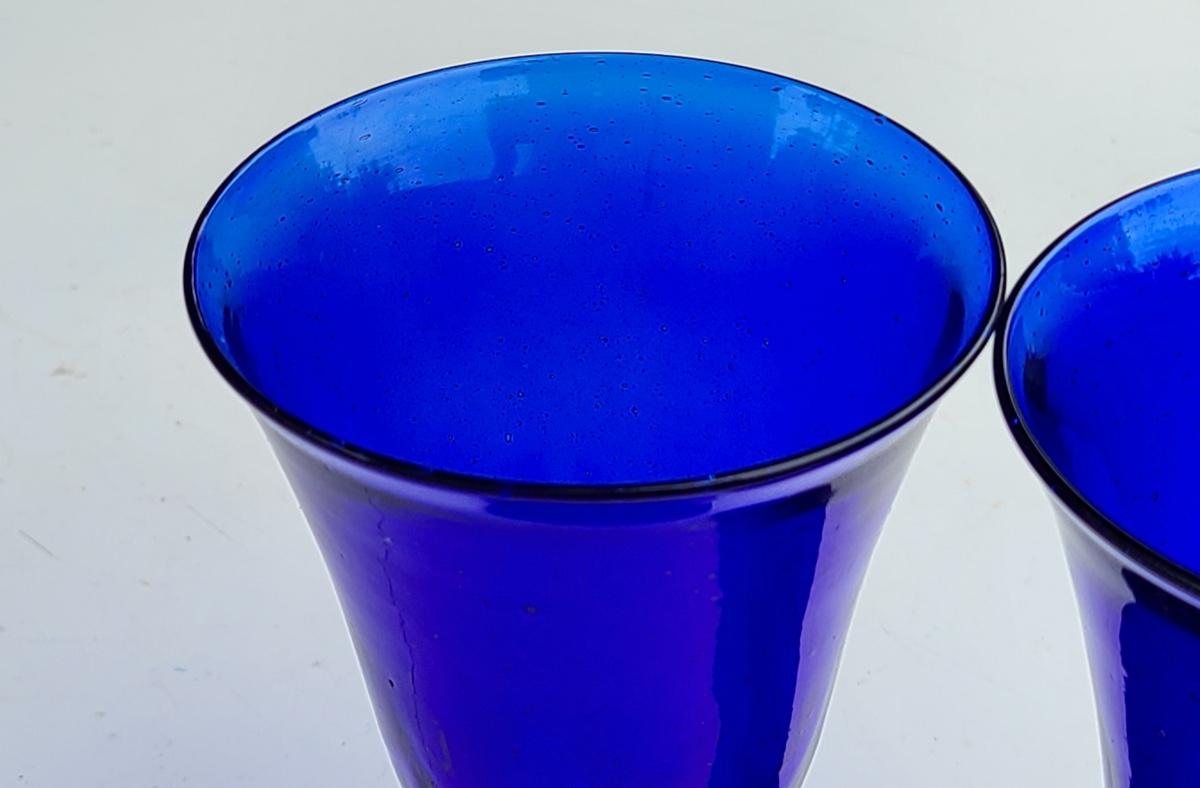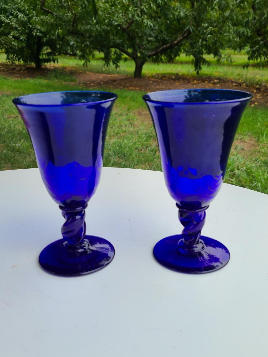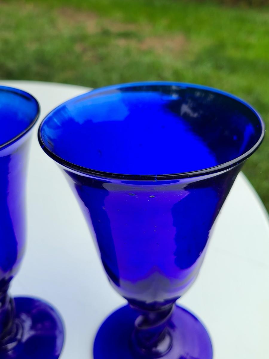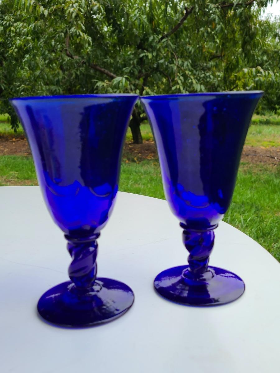 Lot 136: Handblown Glass Cobalt Blue Goblets and Small Ruby Red Pitcher