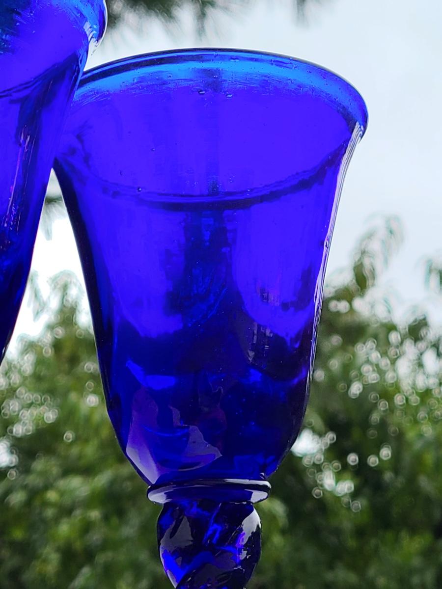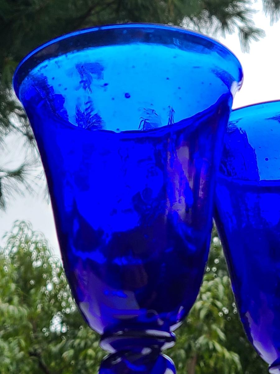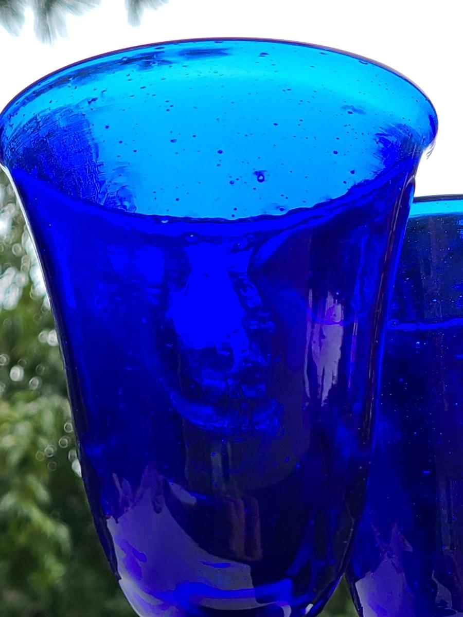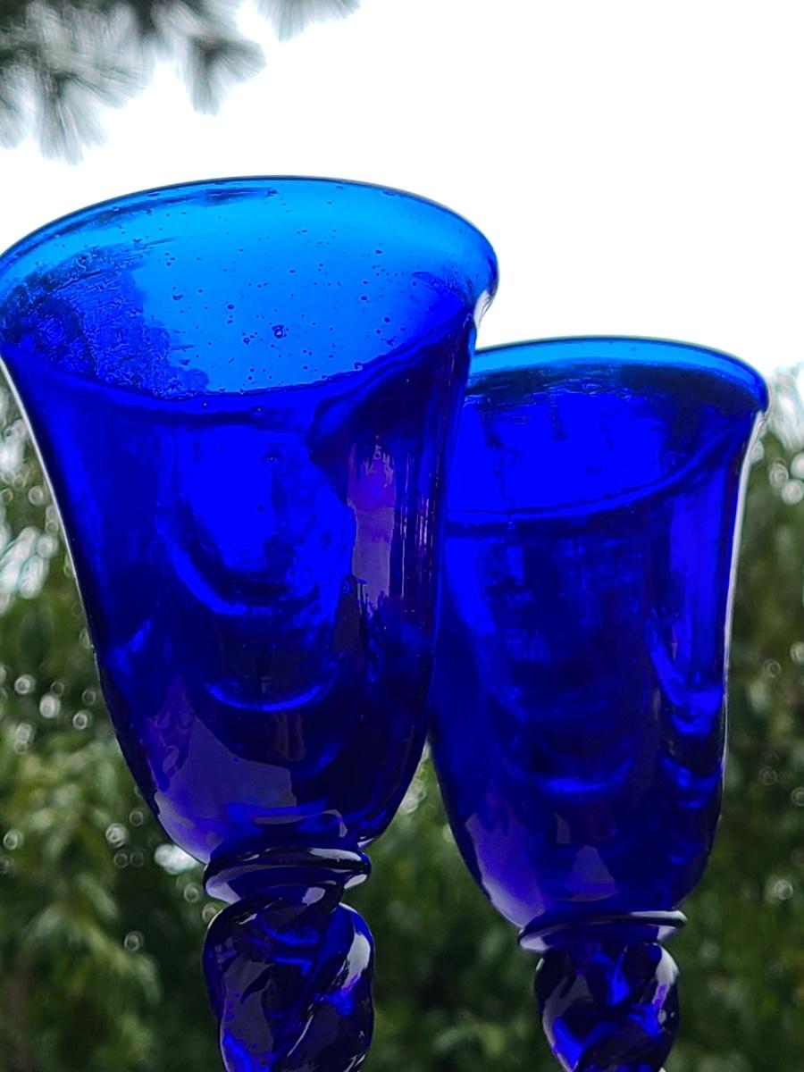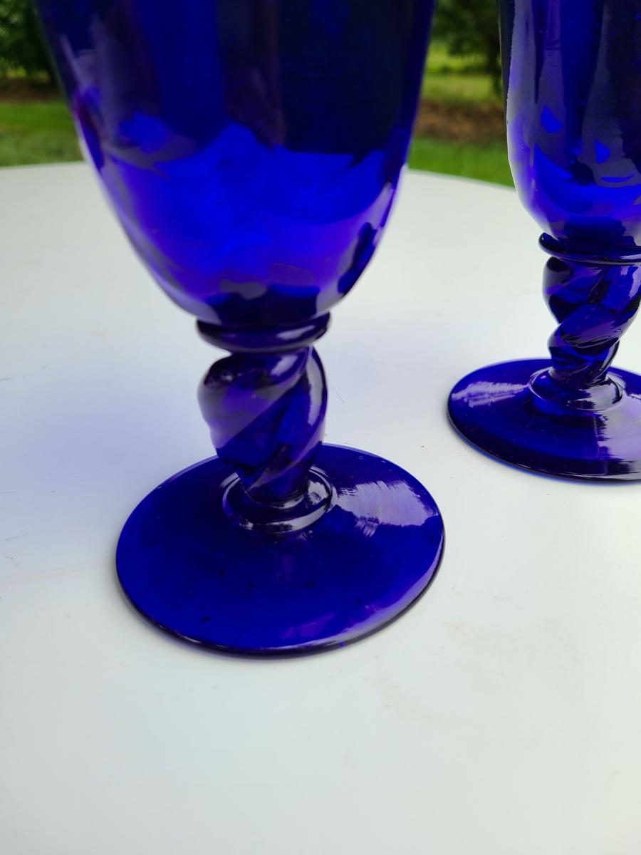 Lot 136: Handblown Glass Cobalt Blue Goblets and Small Ruby Red Pitcher