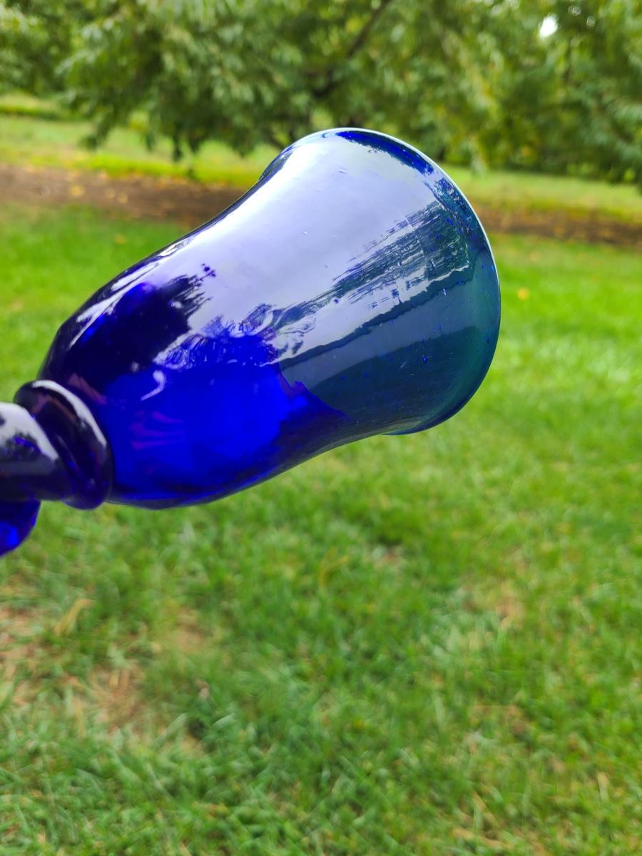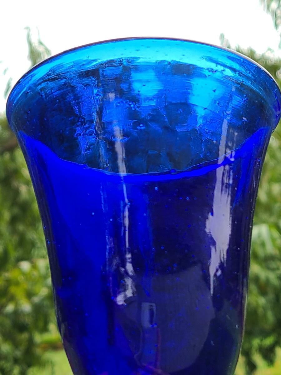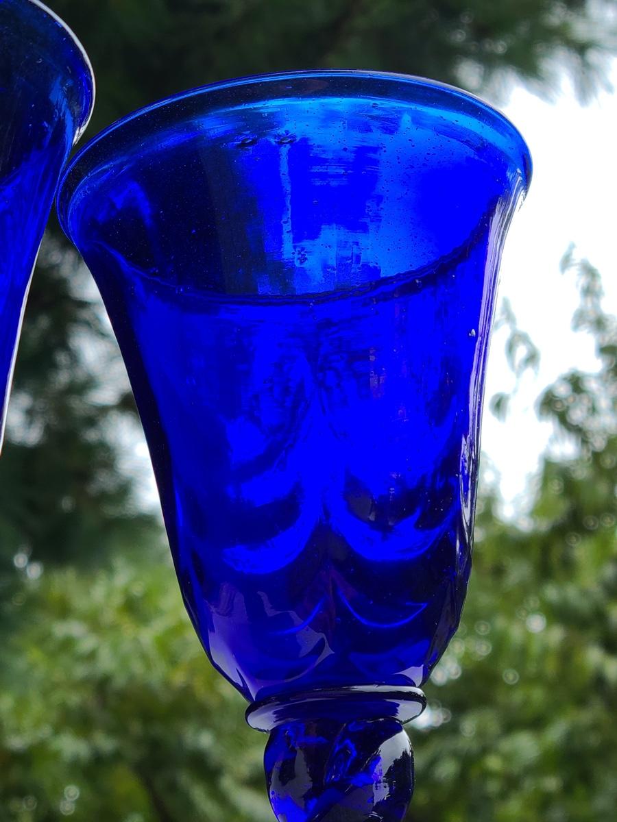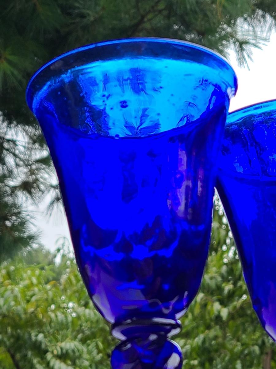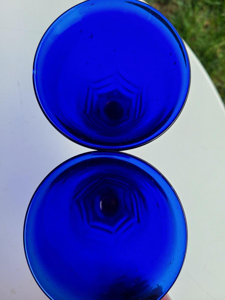 Lot 136: Handblown Glass Cobalt Blue Goblets and Small Ruby Red Pitcher