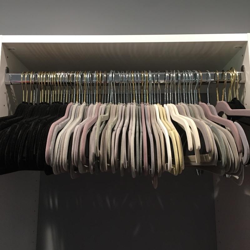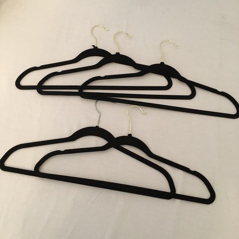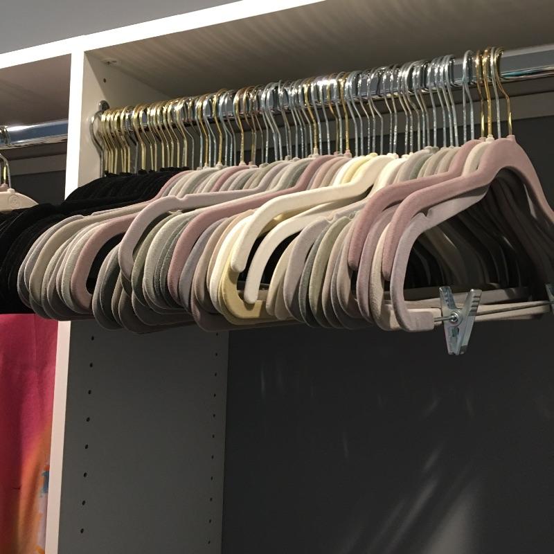 Over seventy hangers with a cloth on them to keep your clothes from slipping off. You can never have to many hangers.