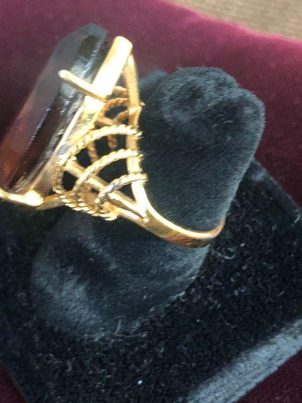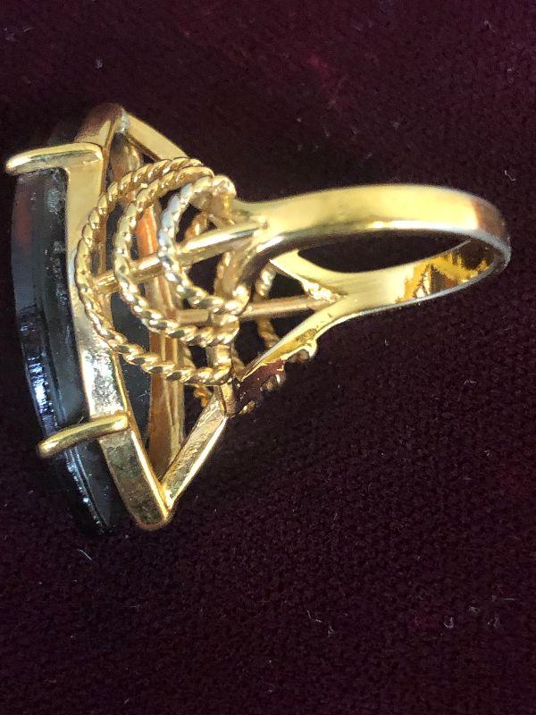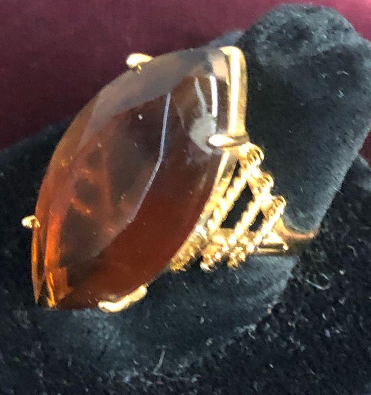 Lot # 136 Ladies Ring Gold tone / Brown Marque Large
