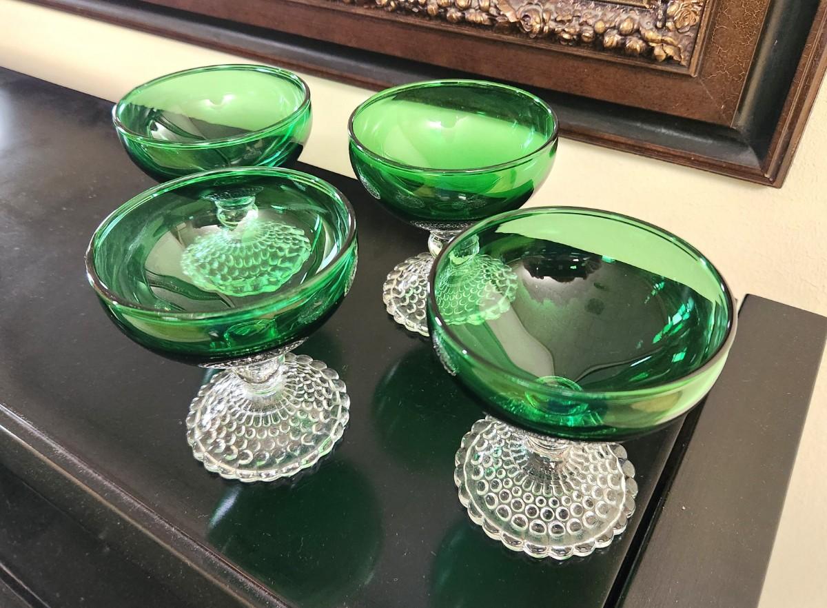 Lot #136 Lot of 4 Anchor Hocking Emerald Green Bubble Feet Dessert/Sherbets