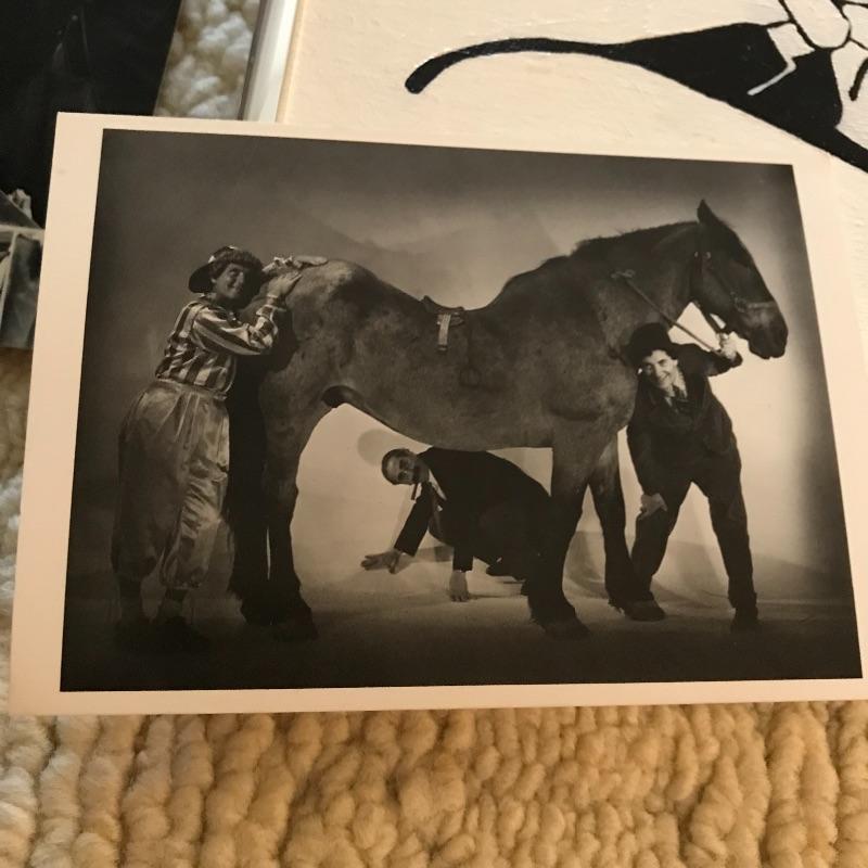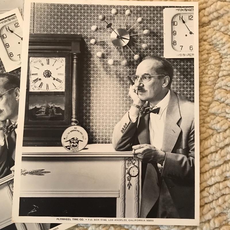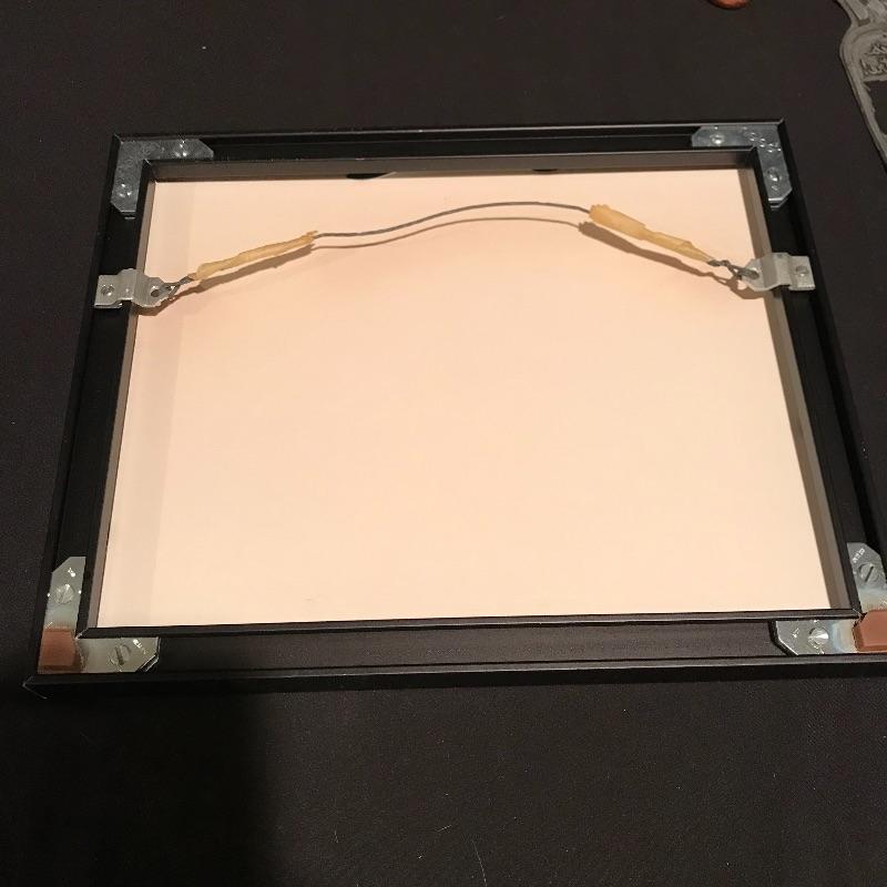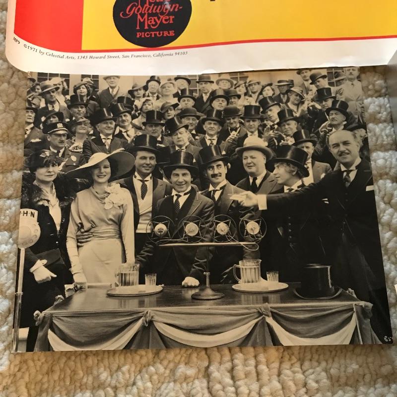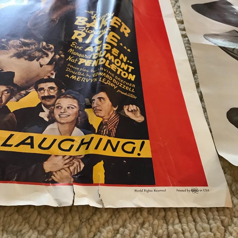 This laugh-filled collection has some rare finds! Check out the metal print block from “A Night in Casablanca”. It is in great shape and measures approximately 8” x 11”. There are two posters with the wacky trio(both have some bends and creases, one has small rips in the lower right corner)., Six copies of Flywheel Time Co Groucho photos. a fun framed oil painting signed “Kosma “˜79” and more! The black metal framed photo is approximately 10.25” x 8.25”. Shipping available.