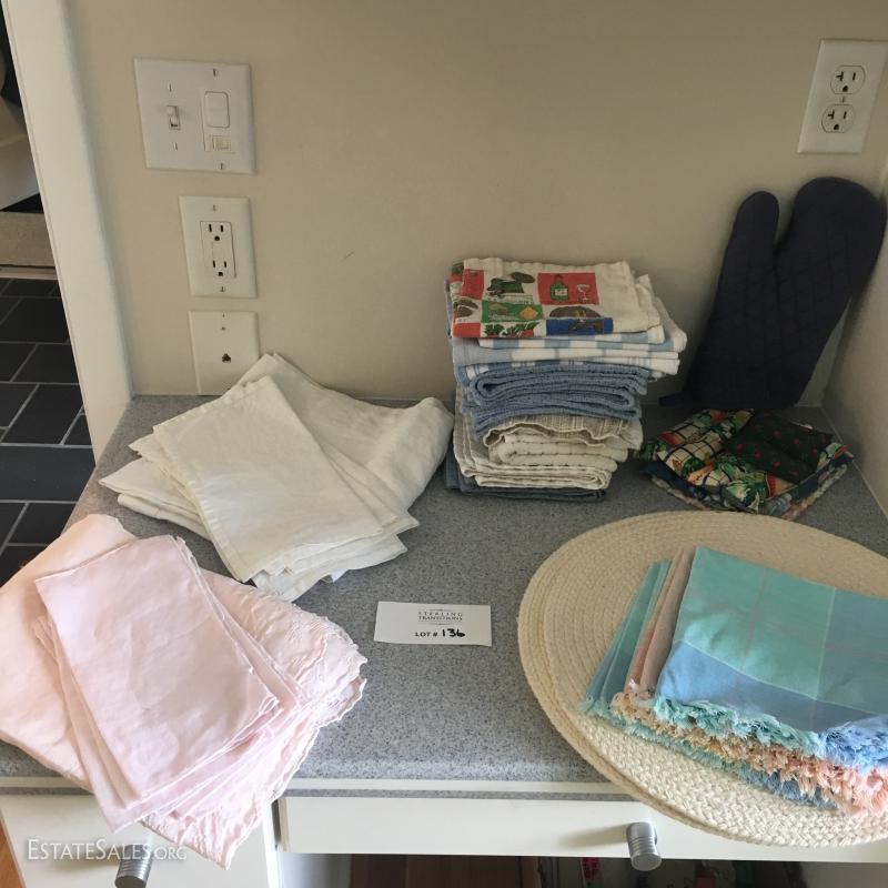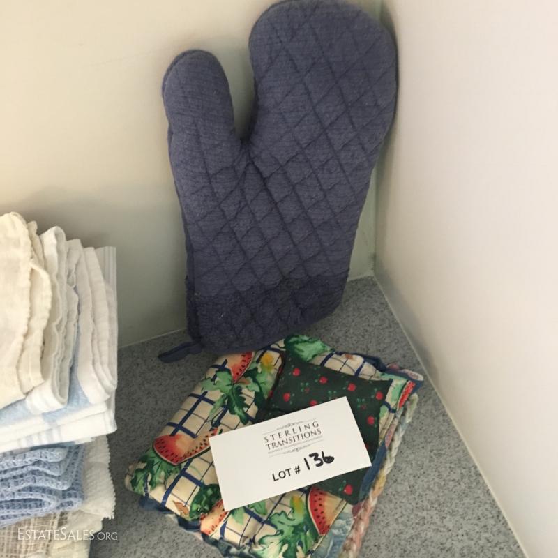 Kitchen Mitten or hot glove, Scented, hand made hot plates, dishcloths, set of 5 round placemats (cream color), linen table cloth & matching napkins